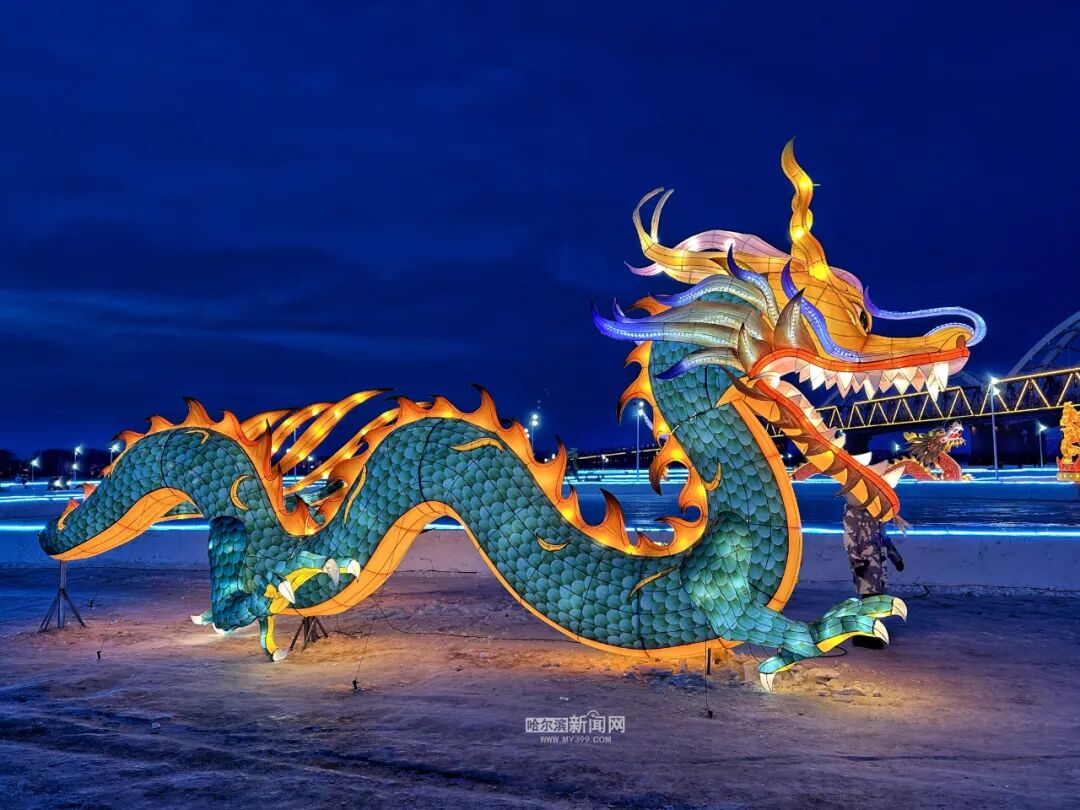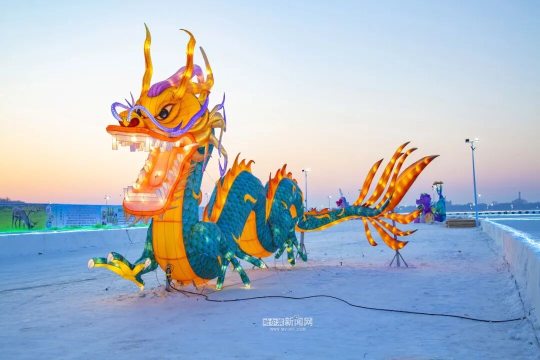 近日,各种各样的新年花灯亮相松花江冰雪嘉年华。