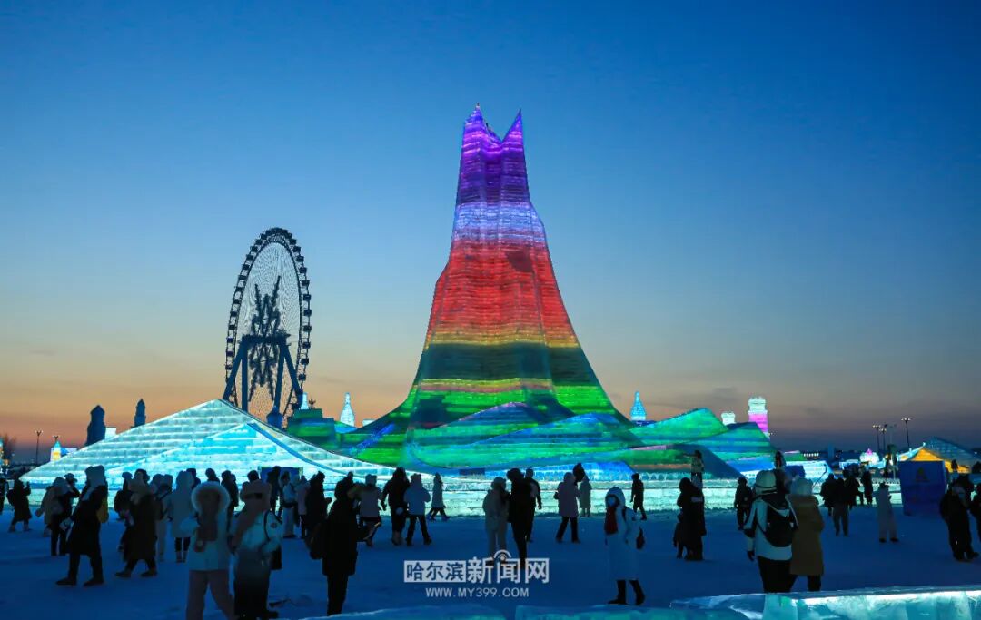 经过25年的探索和研发,哈尔滨冰雪大世界在冰雪景观建造工艺、灯带镶嵌技术、灯光调和等方面已经成为我国冰雪园艺科技创新的典范。结合冰雪、文化、科技等,刚刚开园的第25届哈尔滨冰雪大世界又打造出了一座世界顶级的冰雪主题乐园。当这个如梦似幻的冰雪主题乐园在夜晚被点亮,整个园区便携万千琉璃,为冬日故事埋下伏笔。