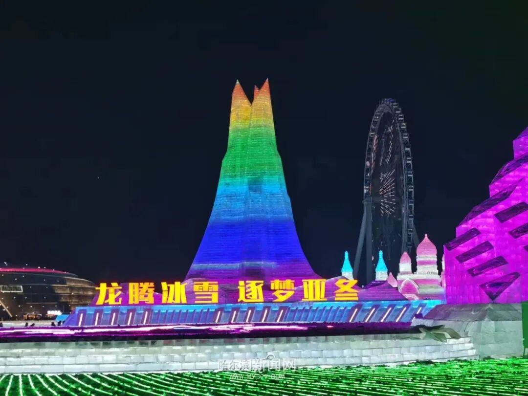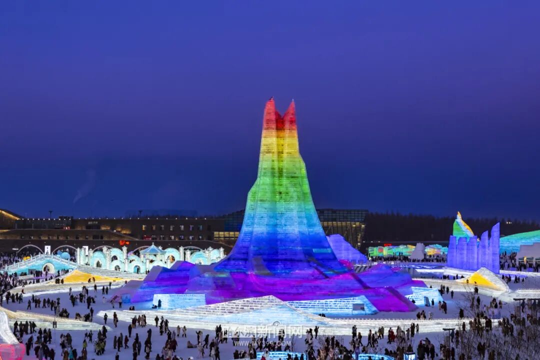 本届冰雪大世界主塔“冰雪之冠”高43米,