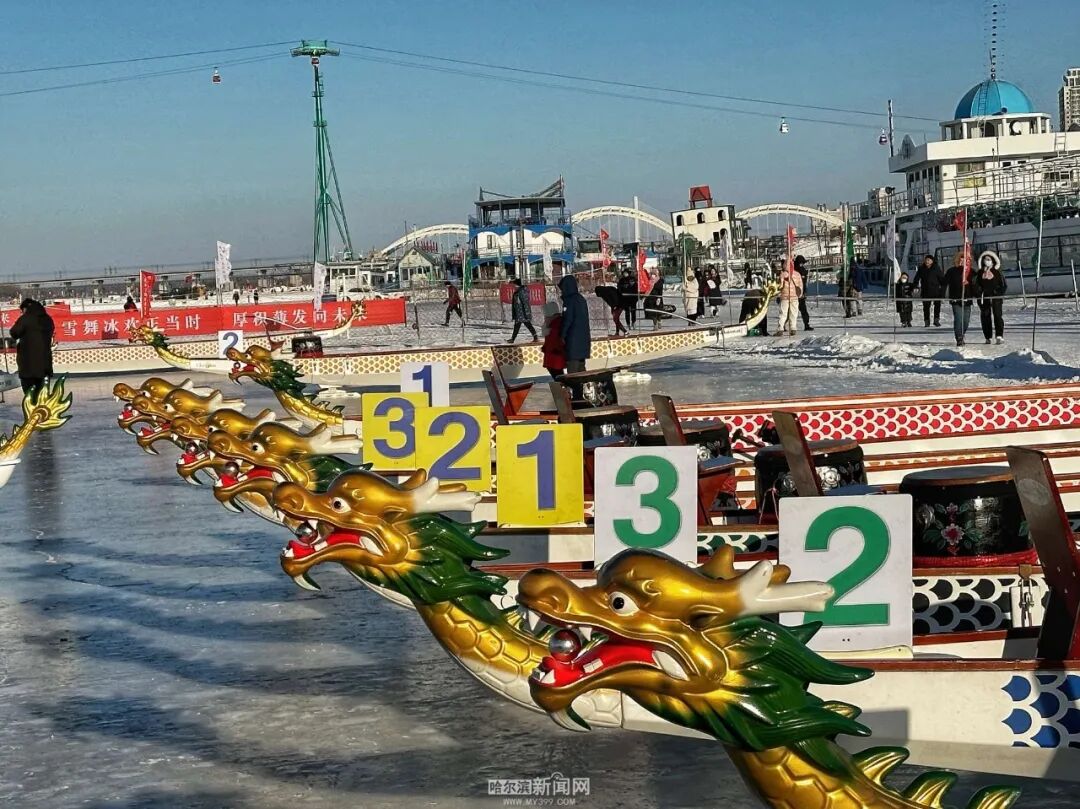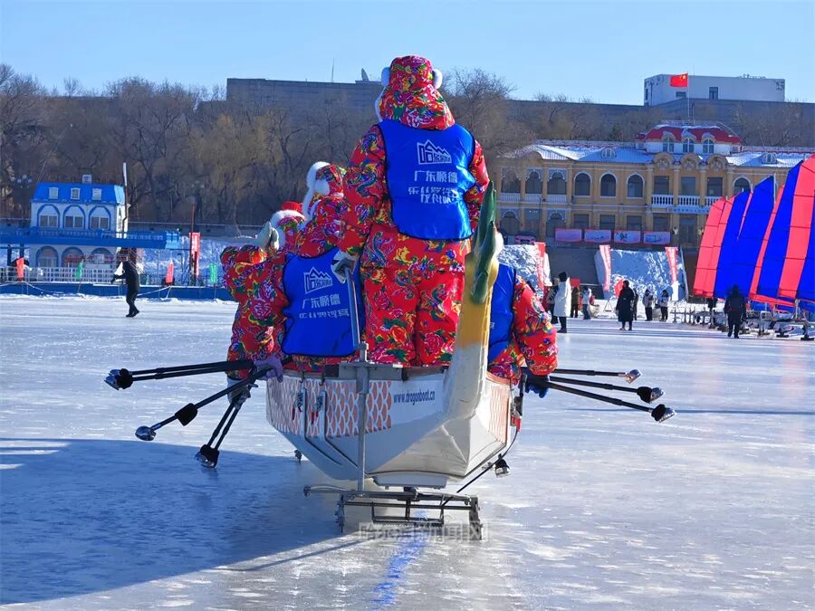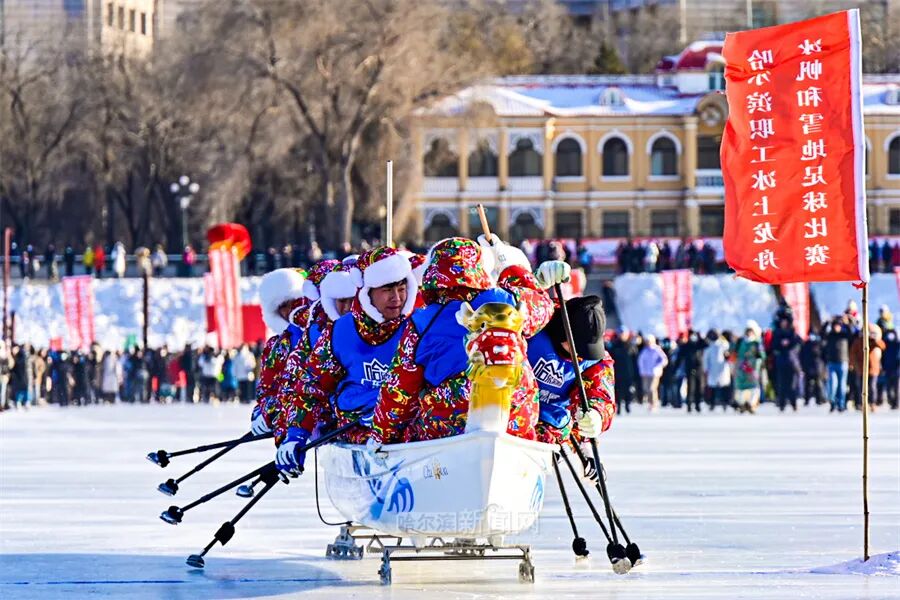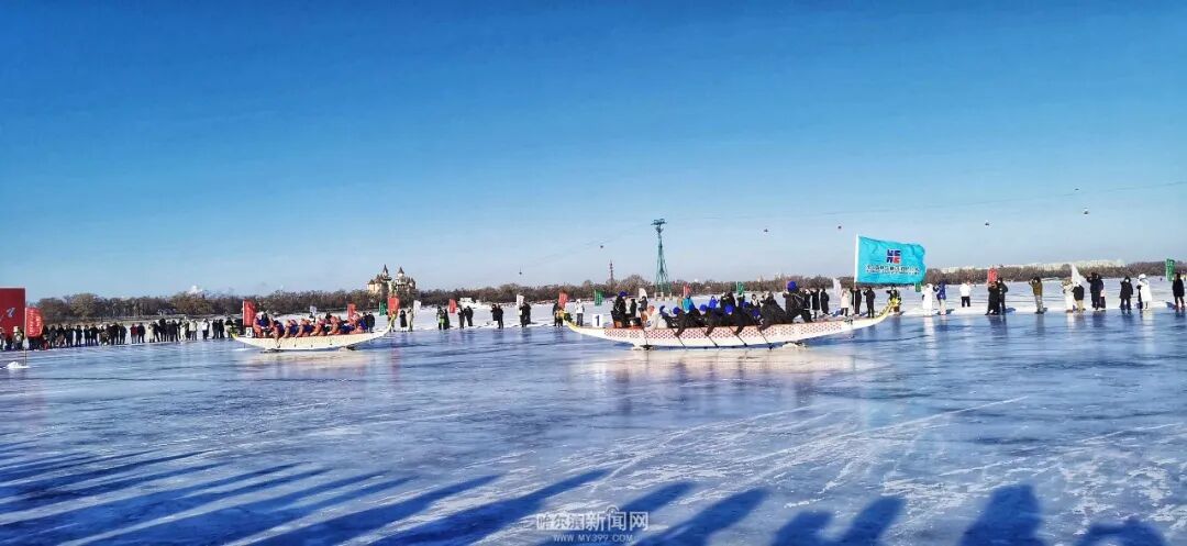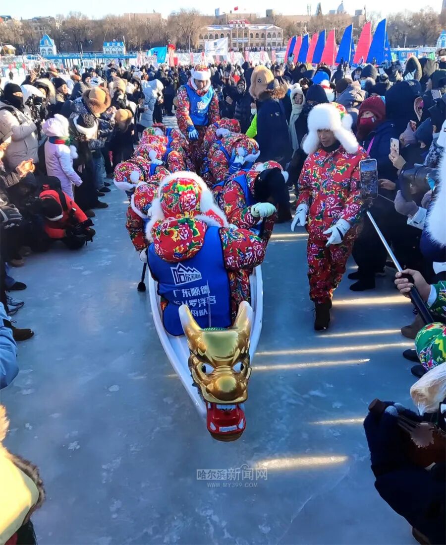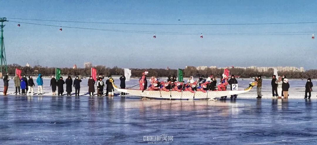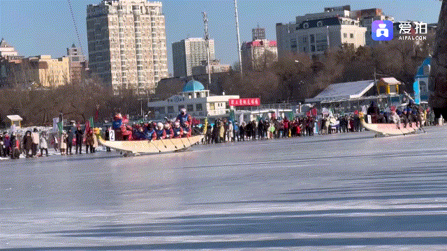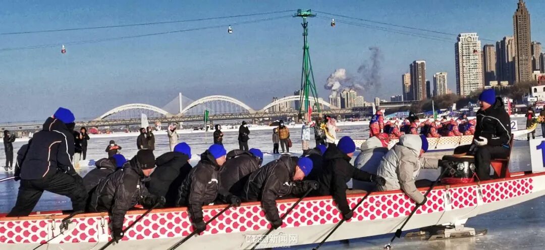 话说,1月7日,哈尔滨搞了一场冰上龙舟赛。