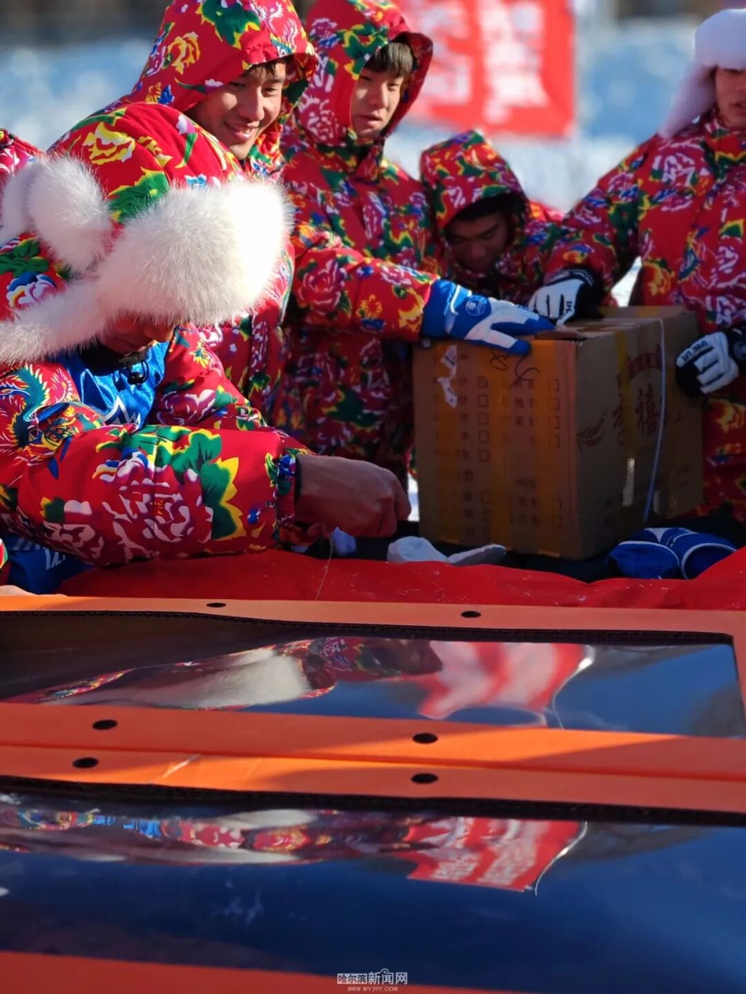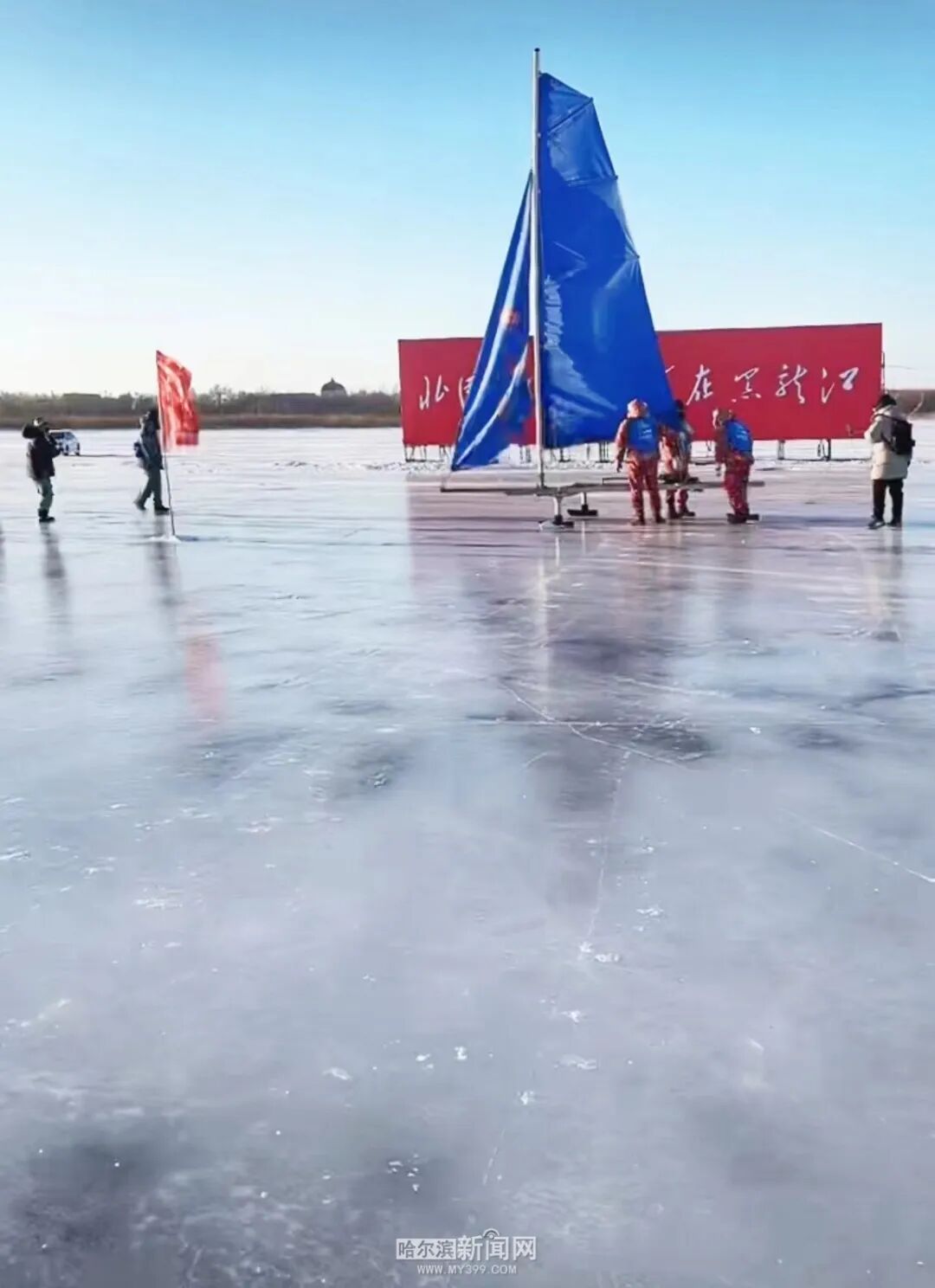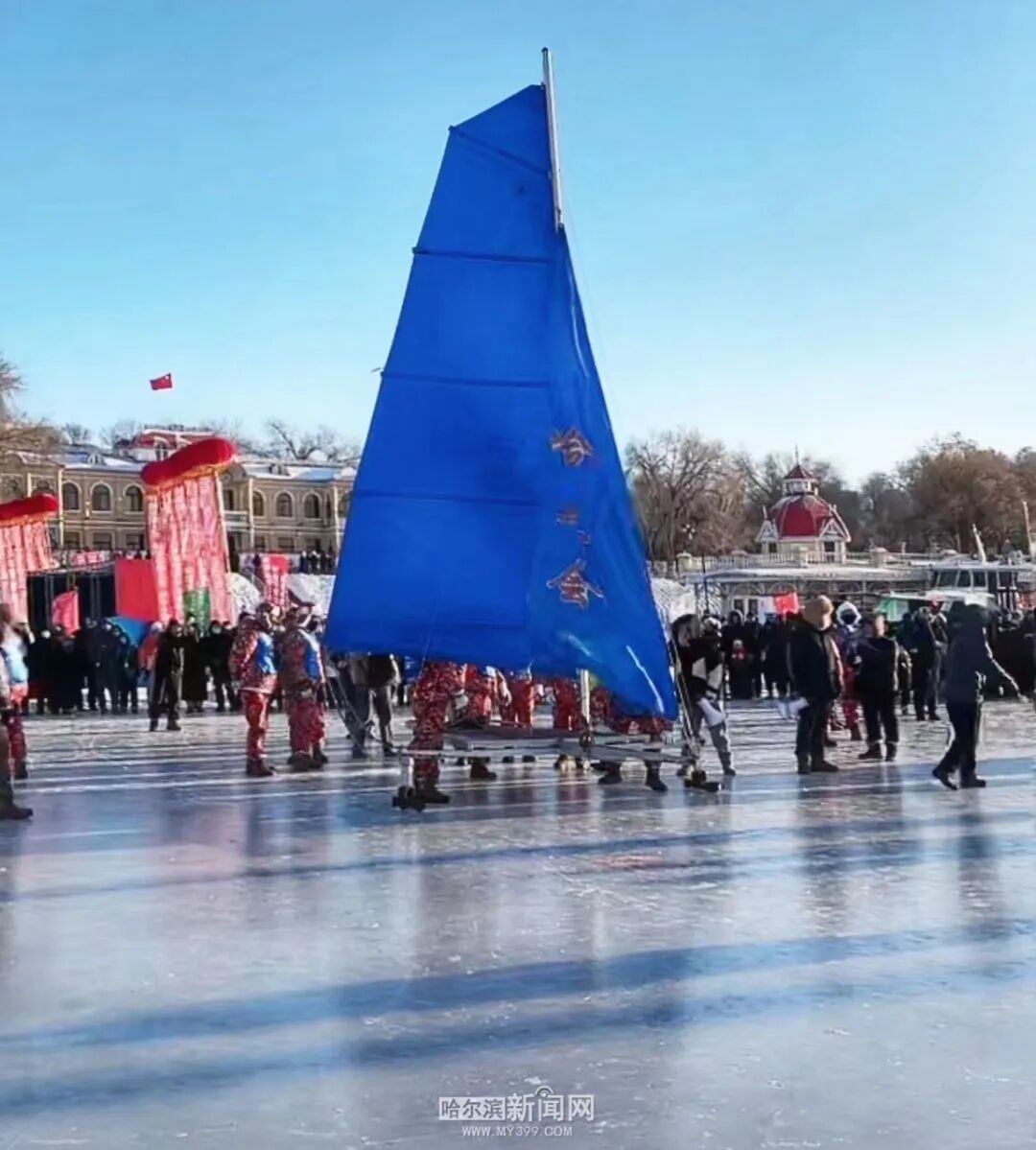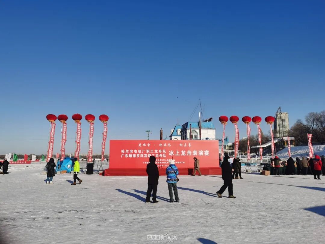 话说,1月7日,哈尔滨搞了一场冰上龙舟赛。