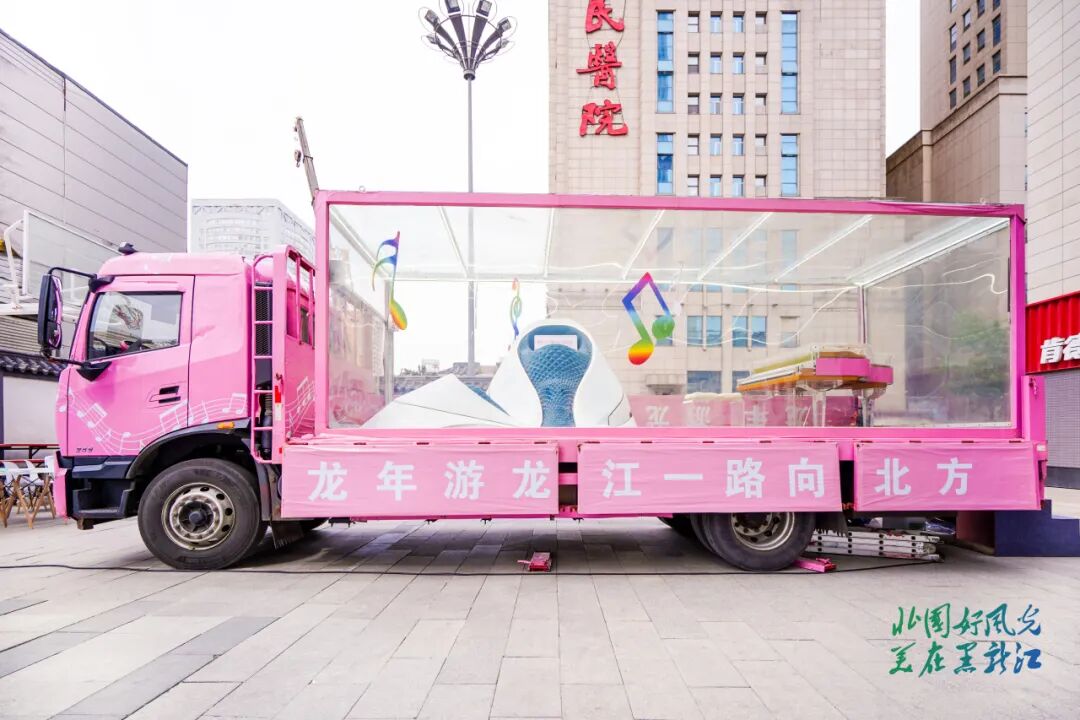 活动现场,5台“龙江游礼车”十分吸睛,成为市民游客互动、拍照打卡地。冰雪主题车用雪与冰打造了“网红大雪人”、冰雪大世界雪花摩天轮等微缩版景观,冰雕师傅现场创作亚冬会吉祥物冰雕作品;森林主题车满载着大小兴安岭的林海涛涛,小兔子与鸟儿在满眼的绿意中嬉戏玩耍,仿佛让人置身于大森林的怀抱;音乐主题车则以哈尔滨大剧院为灵感源泉,将鲜花与艺术完美融合,粉色钢琴在乐手的演奏下流淌着优雅的旋律,带领游客感受哈尔滨“音乐之都”的迷人风情;中俄文化主题车厢融合中俄文化交融的璀璨瑰宝,展现出黑龙江作为中俄交流重要窗口的独特魅力;东北民俗主题车厢则仿佛时光的隧道,红色大花棉被和热炕头,带游客重温温馨而淳朴的东北回忆。