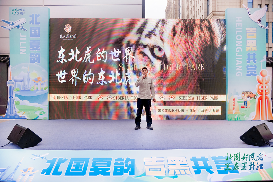 “请大家跟随我的脚步一起走进东北虎的世界,看看世界的东北虎。”黑龙江东北虎林园推介官说,黑龙江东北虎林园是目前世界上最大的东北虎饲养繁育基地、东北虎豹国家公园种源储备单位,同时也是国家 4A 级旅游景区,更是黑龙江省独具特色的标志性旅游景区。