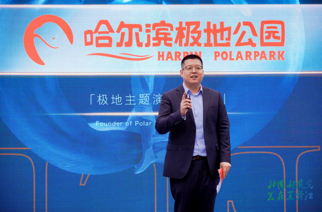 “我们有白鲸秀、淘学企鹅海豚秀、海象脱口秀、冰川极光秀、鳐鱼秀、水舞秀、淘学企鹅科普秀等世界级的七大主题表演,还有全世界唯一的北极熊酒店,欢迎大家来到这个欢乐的地方。” 哈尔滨极地公园推介官向现场观众热情推介。