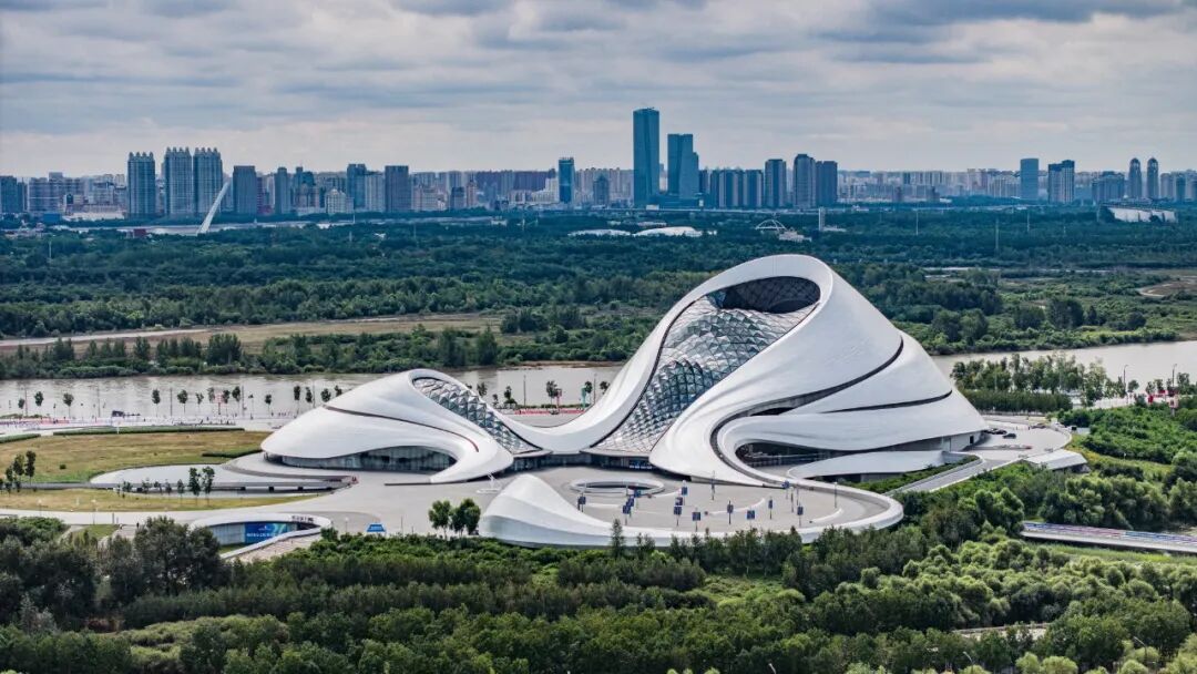 哈尔滨是一座拥有百年交响乐团的音乐名城,哈尔滨大剧院可以称得上是音乐神圣殿堂。哈尔滨大剧院依水而建,作为哈尔滨标志性建筑之一,哈尔滨大剧院像一条银色的丝带飘扬在松花江湿地之间,8月25日,马拉松跑者们可近距离感受它的巧夺天工的震撼设计。