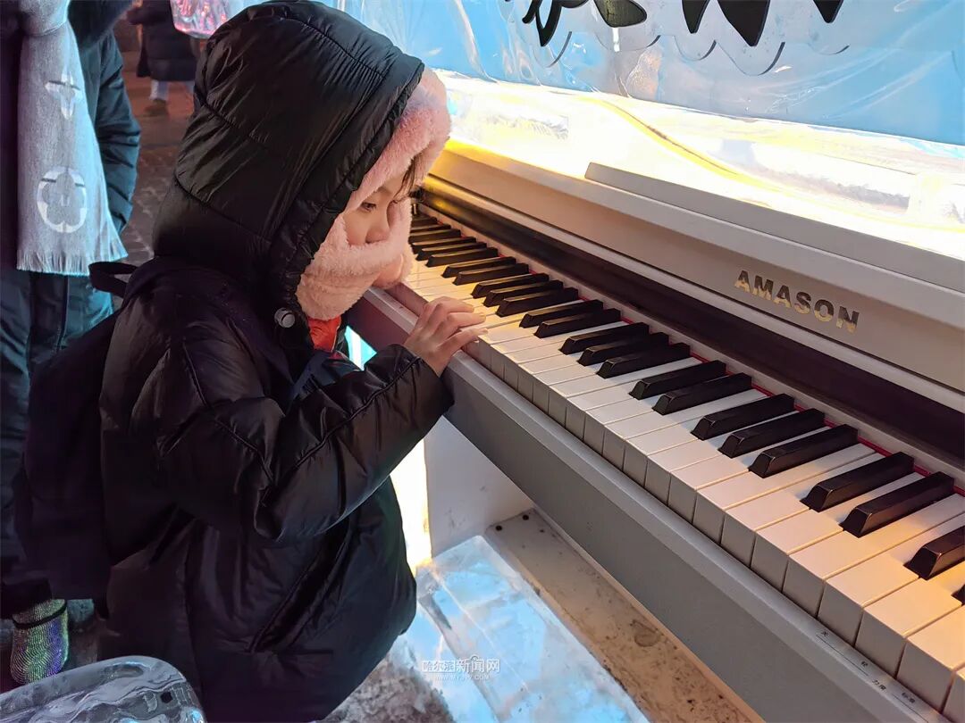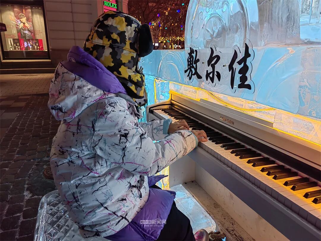 【激情迎亚冬 冰雪暖世界】冰雪中的浪漫丨 中央大街游客奏响冰钢琴,唯美流畅吸引众人驻足