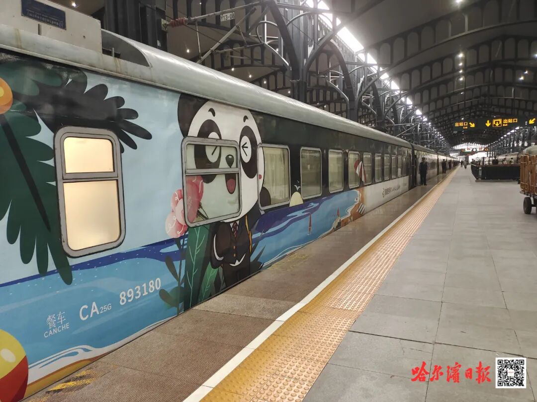 5月22日,来自重庆、四川等地的491名游客搭乘Y675次“熊猫专列”由成都抵达哈尔滨,经过一天游玩后,乘车前往“神州北极”漠河,开启“找北”之旅。