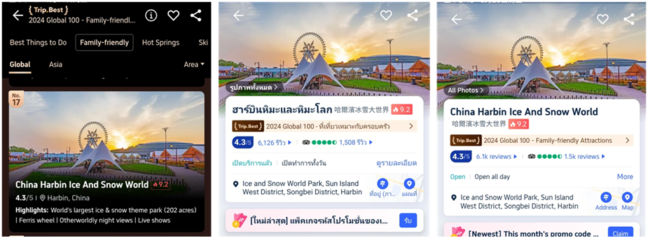 近日,携程旅行发布2024年携程口碑榜年度榜单,哈尔滨冰雪大世界与上海迪士尼度假区、北京环球度假区、新加坡环球影城等景区、景点共同入选“2024全球100亲子景点”。