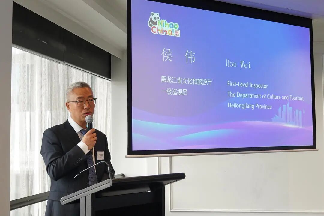 侯伟在致欢迎词中表示,自2022年北京冬奥会以来,中国冰雪旅游设施和服务得到了极大的改善,冰雪旅游的消费成本对于所有消费者来说都非常具有竞争力。今年,黑龙江代表团将与办事处共同参与新西兰冰雪旅游博览会,推广中国冰雪旅游资源和产品。相信此次推广活动将进一步让新西兰民众了解中国的冰雪旅游资源,吸引新西兰冰雪爱好者体验中国的冰雪世界。