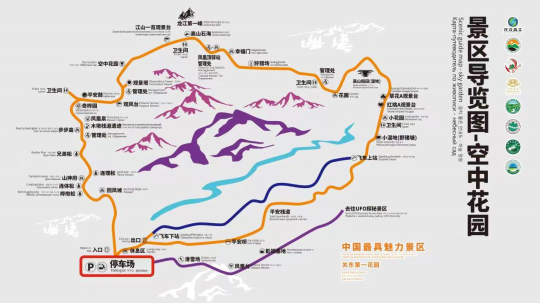 游客到达凤凰山景区购票后,乘坐景区环线车前往空中花园景区。到达景区停车场就可以进行有氧步行了,沿途有回凤坡、山神府、奇桦园、高山崖柳、观凤台、高山偃松、高山杜鹃、UFO观景台、江山一览、高山石海、龙江第一峰、高山湿地、小花园等景观。站在龙江第一峰旁,体会山高我为峰的豪迈。(特别提示:今年凤凰山大峡谷维修升级,暂时关闭)