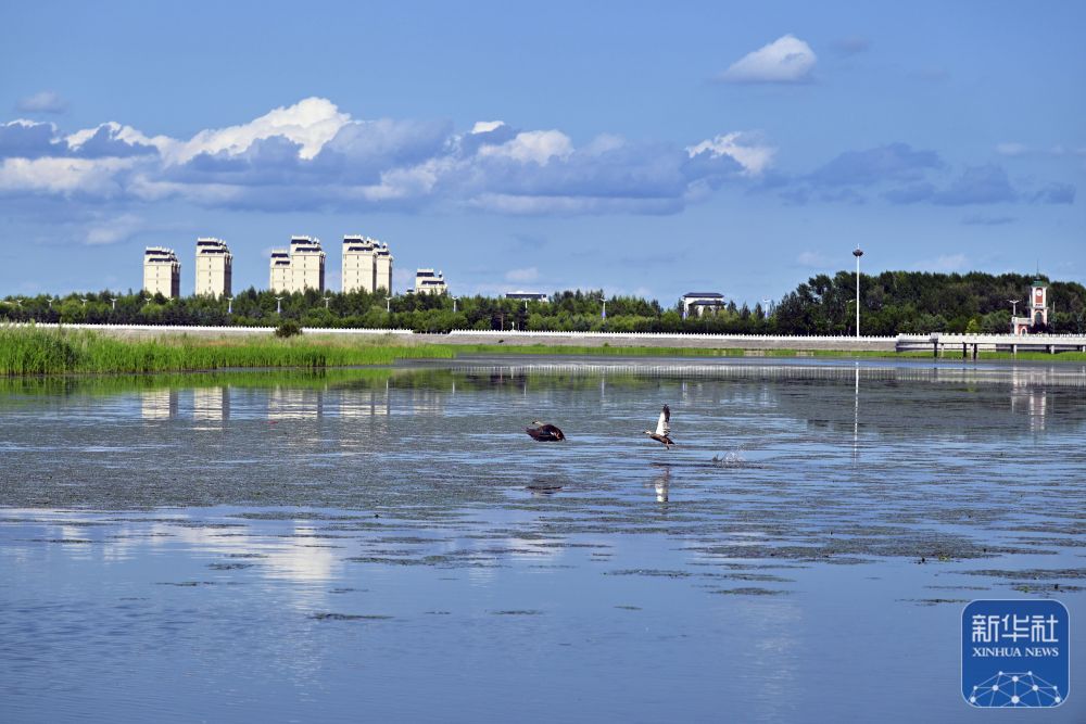 ↑ 这是7月13日在同江三江口国家湿地公园拍摄的公园景观。