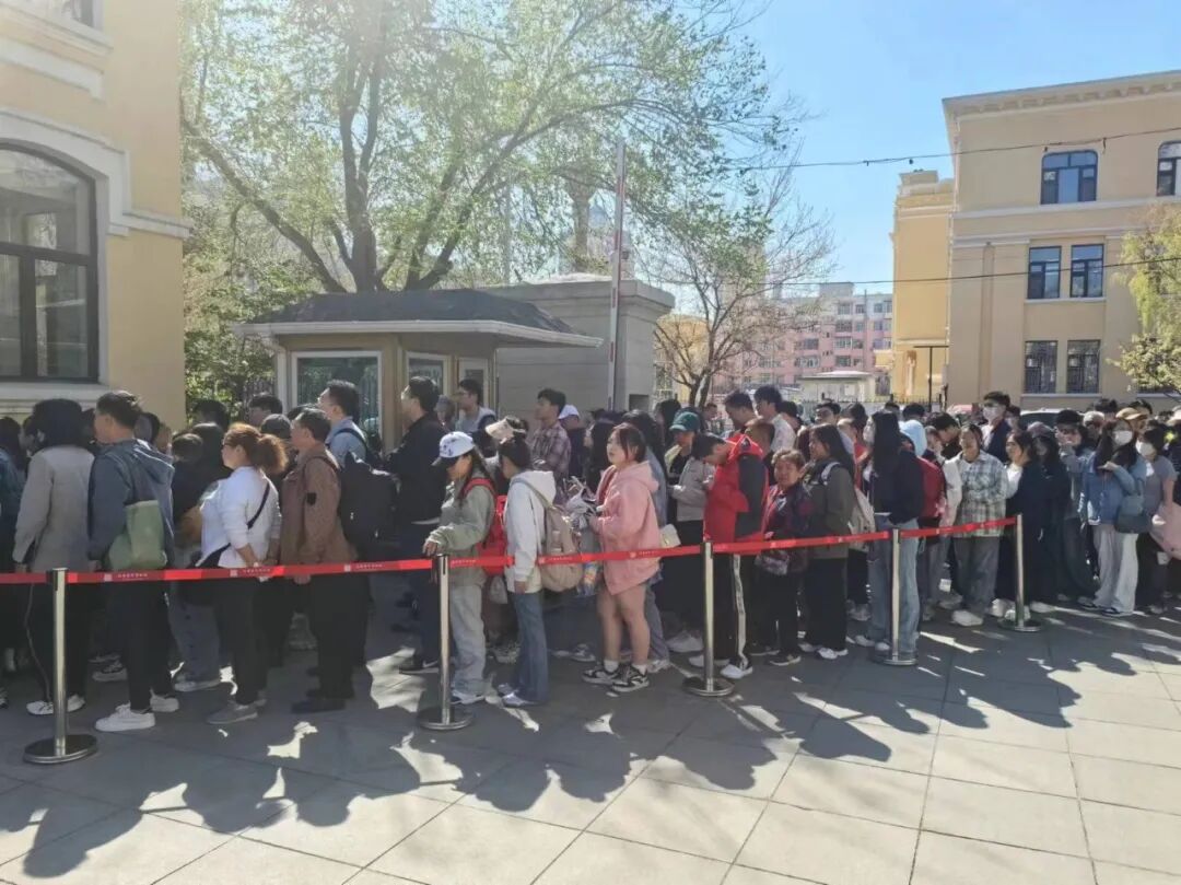 “五一”期间,众多游客排队参观哈尔滨市博物馆