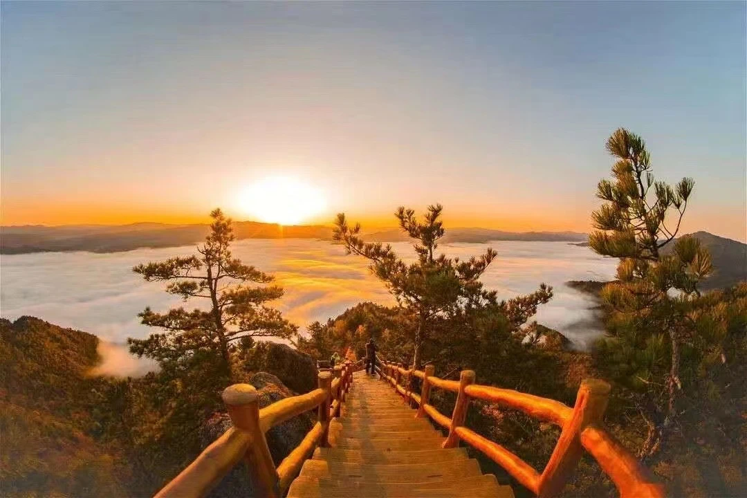 当黎明的第一缕曙光悄然洒落在金祖峰上,天际渐渐泛起鱼肚白,随后,那一抹红色逐渐变得绚烂夺目。站在金祖峰之巅,沐浴在这温暖而璀璨的日出光芒中,感受山林的气息和大自然的祝福。