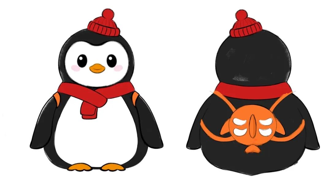 企鹅雪人色彩大胆,黑白相间,既还原了企鹅本身颜色,也寓意黑龙江的白山黑水,白色的冰雪覆盖着黑色的大地,橙色书包则象征希望。红色的毛线帽和围脖点缀,更代表着哈尔滨人的热情好客,温暖着每一位远道而来的南方小金豆。