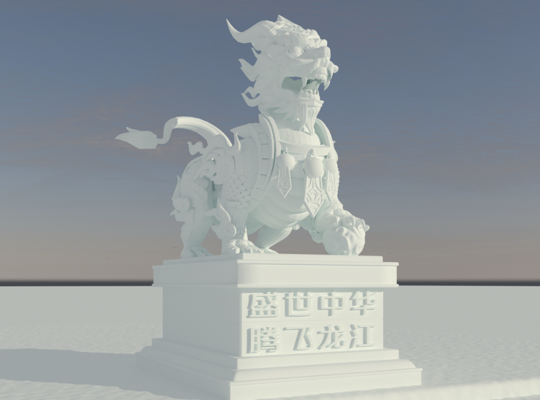 我们团队设计的雪人形象是一个麒麟,在底座上刻写了“盛世中华,腾飞龙江”八个大字。主体麒麟形象是中国重要的文化符号,象征着国泰民安。希望它的存在可以让来到哈尔滨的人们感受到一种和谐的氛围,使得大家之间更加团结友爱。希望哈尔滨能够在未来受到更多欢迎,把吉祥、美好、幸福传播向更远的地方。