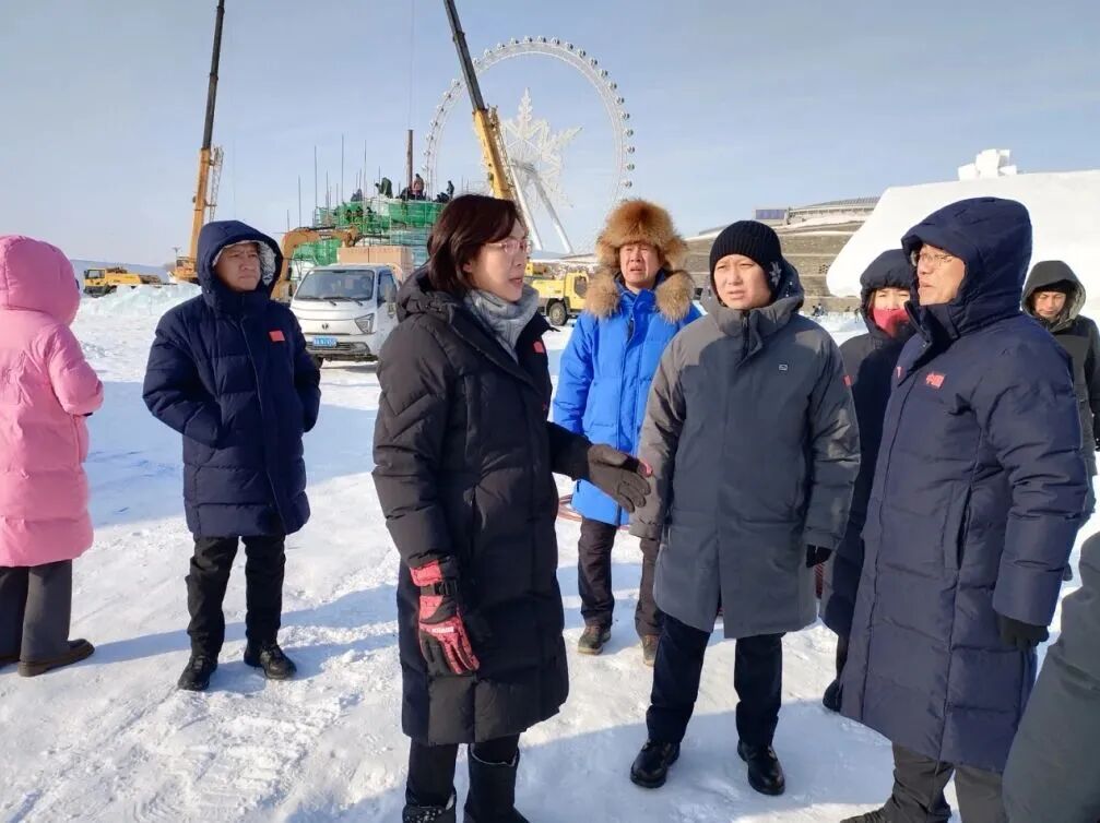 On December 15,2023 Lan Feng, Member of the CPC Harbin Standing Committee and Head of the Municipal Publicity Department went to Harbin's main winter tourist attractions to inspect the progress of the construction of snow and ice sites and safety work and convey greetings to the frontline working staff.