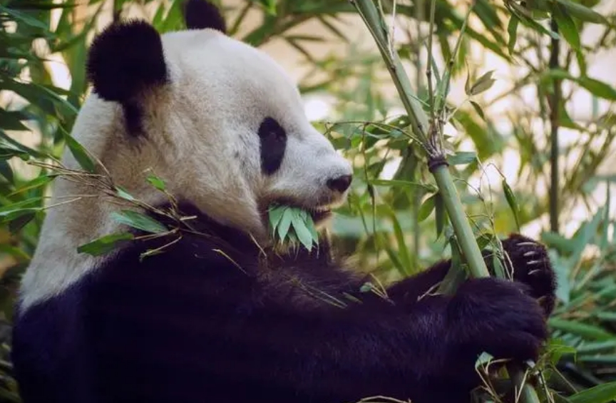 “佑佑”的耳朵像银杏叶,它比“思嘉”警惕性更强,常把竹子“打包”到高处去吃。“佑佑”每天活动量非常大,被大家怀疑“上辈子可能是只藏羚羊”,它总是到处巡视和标记领地。