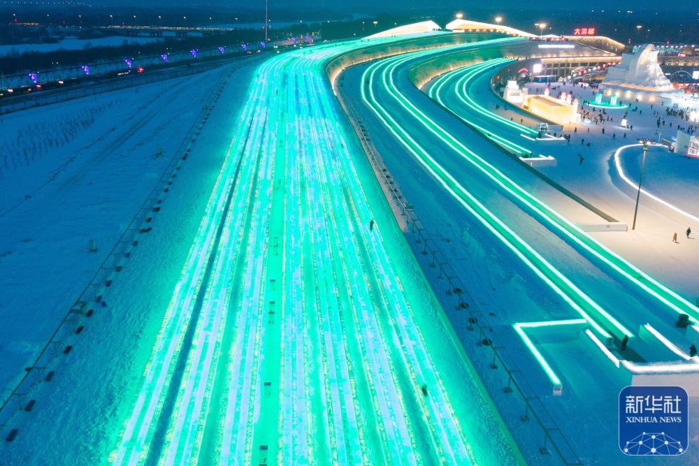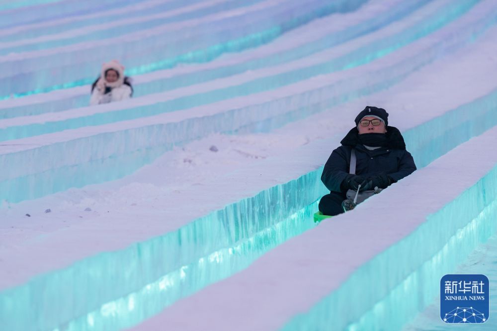 有“冰城”之称的黑龙江省哈尔滨市是冬季热门旅游目的地。本届哈尔滨冰雪大世界超级冰滑梯提档升级,滑道由8条增加到14条,最长的滑道长达521米,吸引各地游客前来游玩体验。