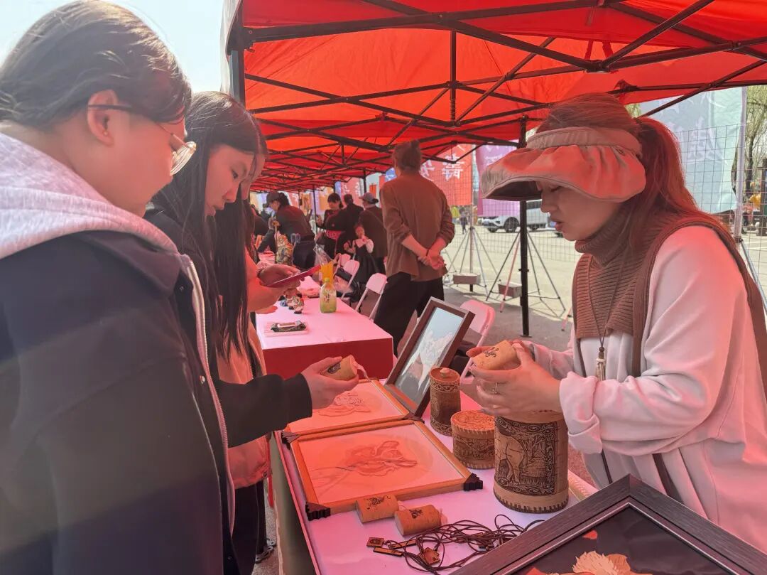 当日下午,位于松雷何所有中央大街店的黑龙江省非遗旅游体验基地开启了精彩的分会场活动。在非遗市集,渤海靺鞨绣的虎头栩栩如生,小老虎的宁古塔彩灯深受孩子喜爱;在非遗工坊,孩子们参与制作带有老虎元素的非遗手工艺品。