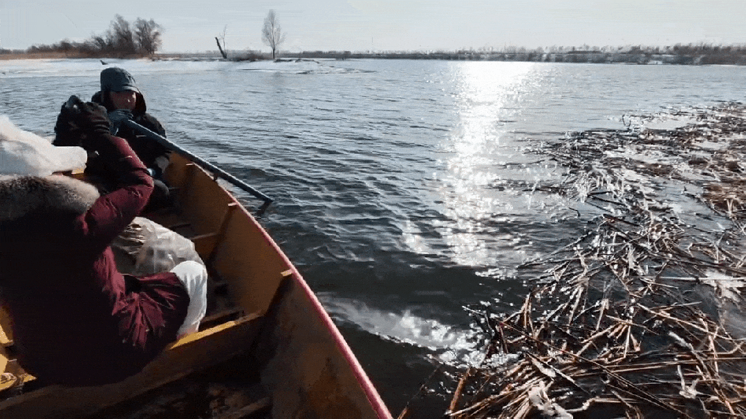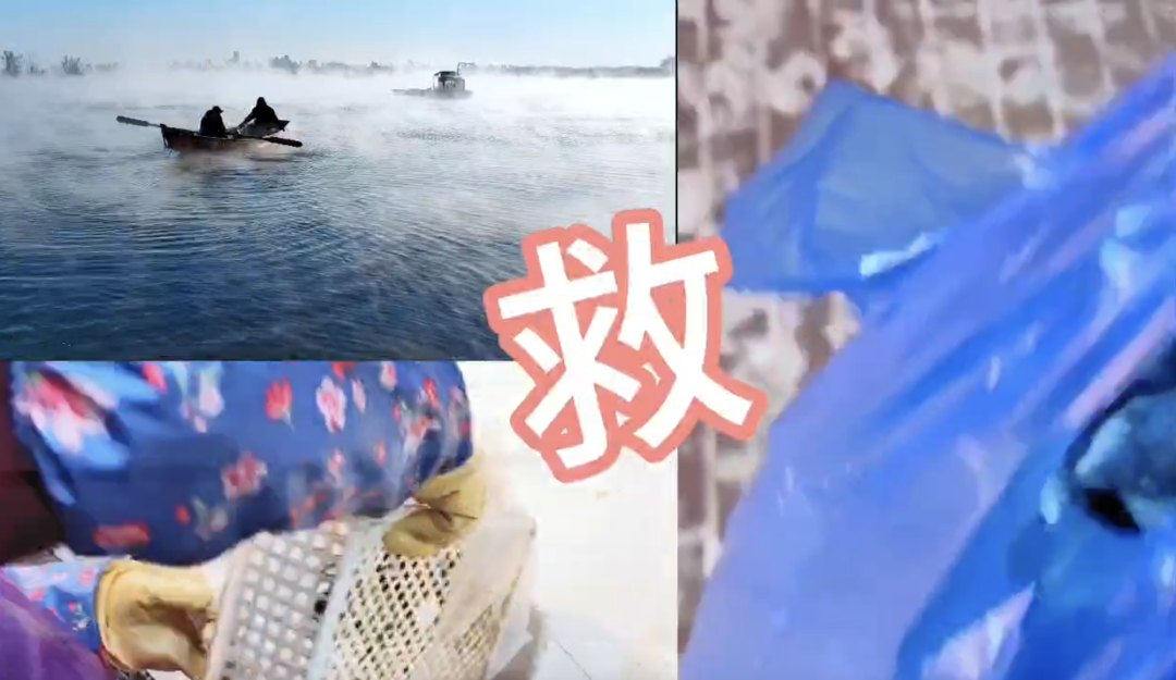 杨威又琢磨出一招:雇船投喂。划船的村民知道是投喂东方白鹳后不肯收钱……还有拍友找到蓝天救援队,救援队积极响应,用皮划艇将十几公斤鱼撒到远处的浅滩附近。