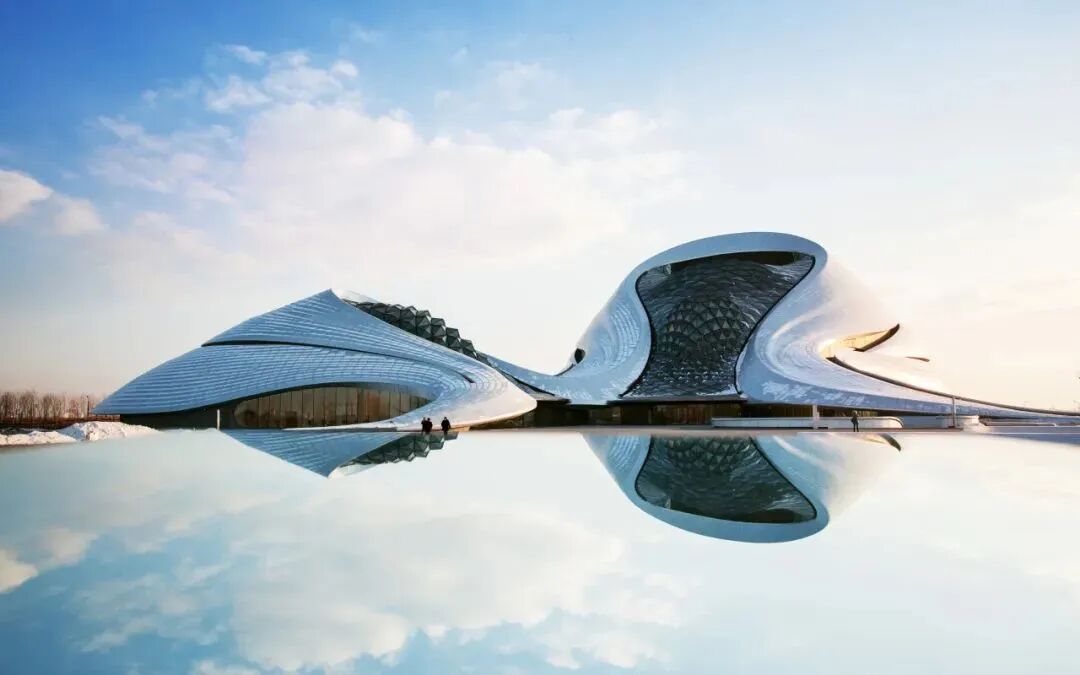 哈尔滨大剧院是哈尔滨标志性建筑,依水而建,与哈尔滨文化岛的定位和设计相一致,体现北国风光大地景观的设计概念。剧场内采用多岛式看台的流线造型与建筑外造型的整体风格相统一。