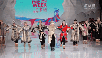 在2024第十届哈尔滨国际时装周上,赫哲族古朴的鱼皮衣与彝族华丽的银头饰不期而遇。