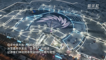 位于中央大街一端的松花江,冰雪嘉年华发出“亚冬会”的邀请,让游客们体验到冰雪运动的乐趣与激情。