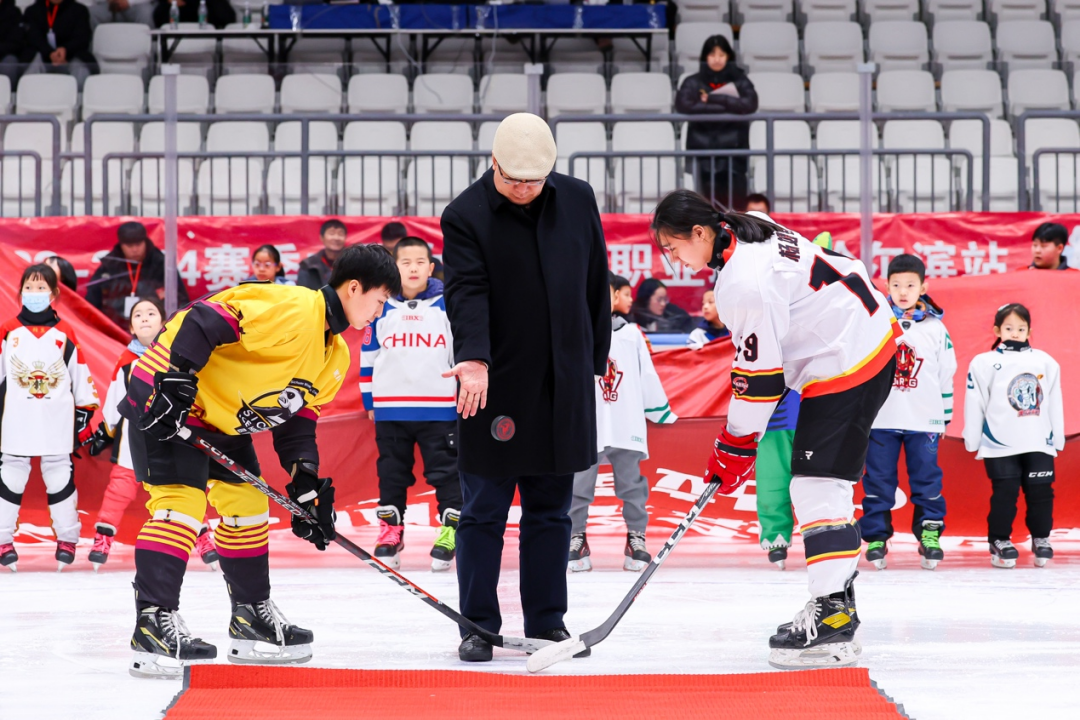 随后,2023-2024赛季中国女子冰球职业联赛哈尔滨站正式开幕,哈尔滨市体育局党组书记、局长赵竹帛为比赛开球。