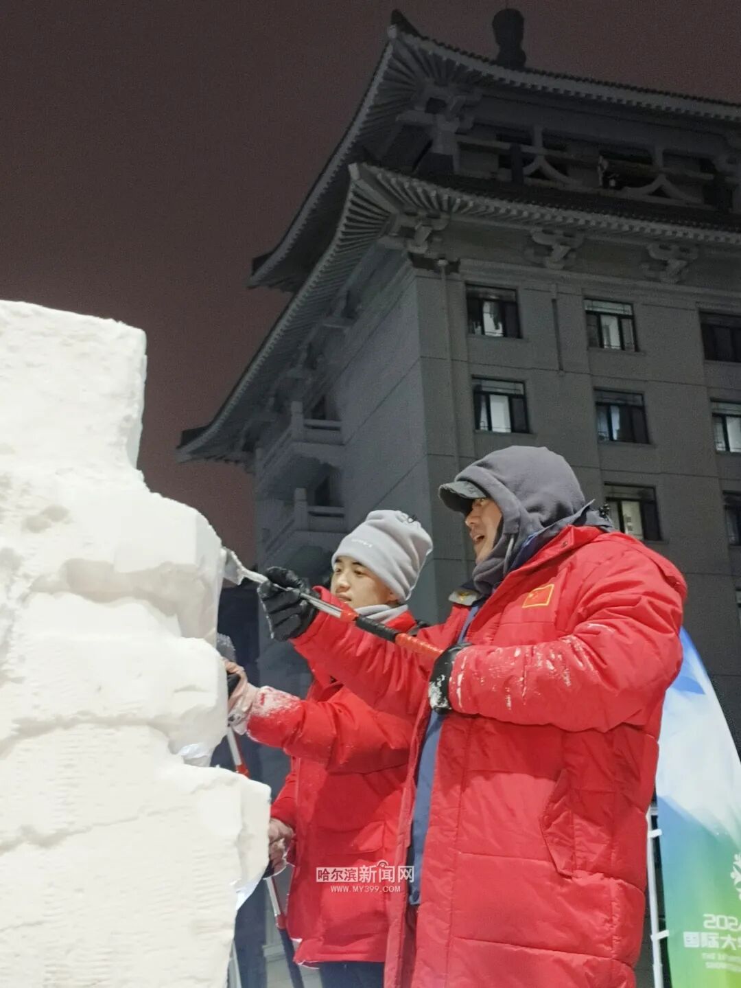 【激情迎亚冬 冰雪暖世界】2024第十六届国际大学生雪雕大赛在哈工程开铲