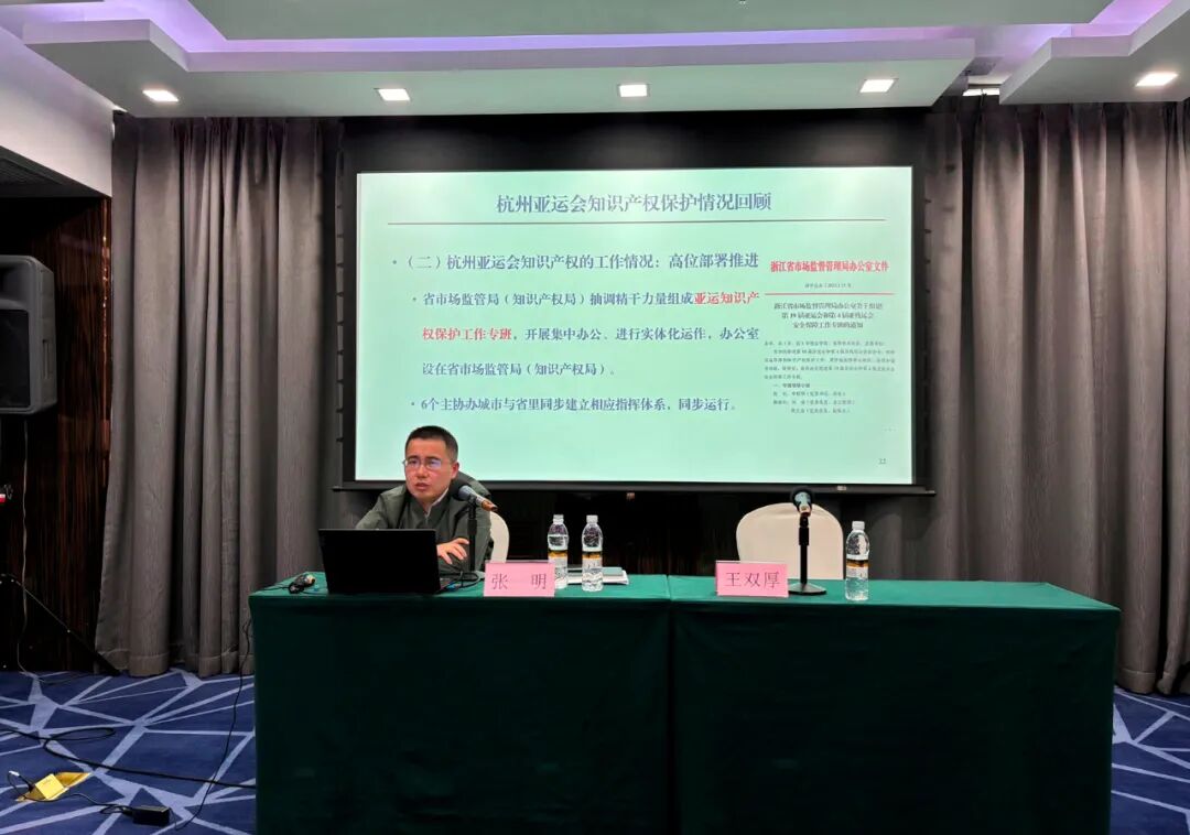 培训特别邀请了国家知识产权(浙江)培训基地、中国计量大学法学院(知识产权学院)专家就特殊标志保护工作实务、专利侵权判定等内容进行专题辅导,并与学员就亚冬会知识产权保护的一些实操问题进行了现场互动交流。培训期间,还就全省知识产权行政保护重点工作进行了交流研讨。