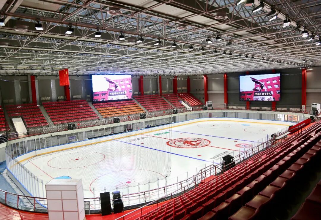 哈尔滨体育学院大学生滑冰馆始建于2006年8月,2007年12月31日竣工交付使用,占地面积5400平方米,建筑面积12060平方米,建设时是世界上仅有的3个分上、下二层的滑冰馆之一。该馆集办公、教学、训练、比赛为一体。建筑外部总高度为19.6米,跨度宽为60米,长为90米。主体采用框架结构,分上、下二层。上层冰场面积1768平方米,高15米,达到国际比赛标准;下层冰场面积1580平方米,高7.6米,可转换成四片标准冰壶场地。局部为四层,建有运动员教练员裁判员休息室、装备间、技术统计室、新闻发布中心、药检室、医务室、体能训练中心、记者工作区及比赛技术用房等国际比赛标准用房。东西两侧设置2200个观众席。