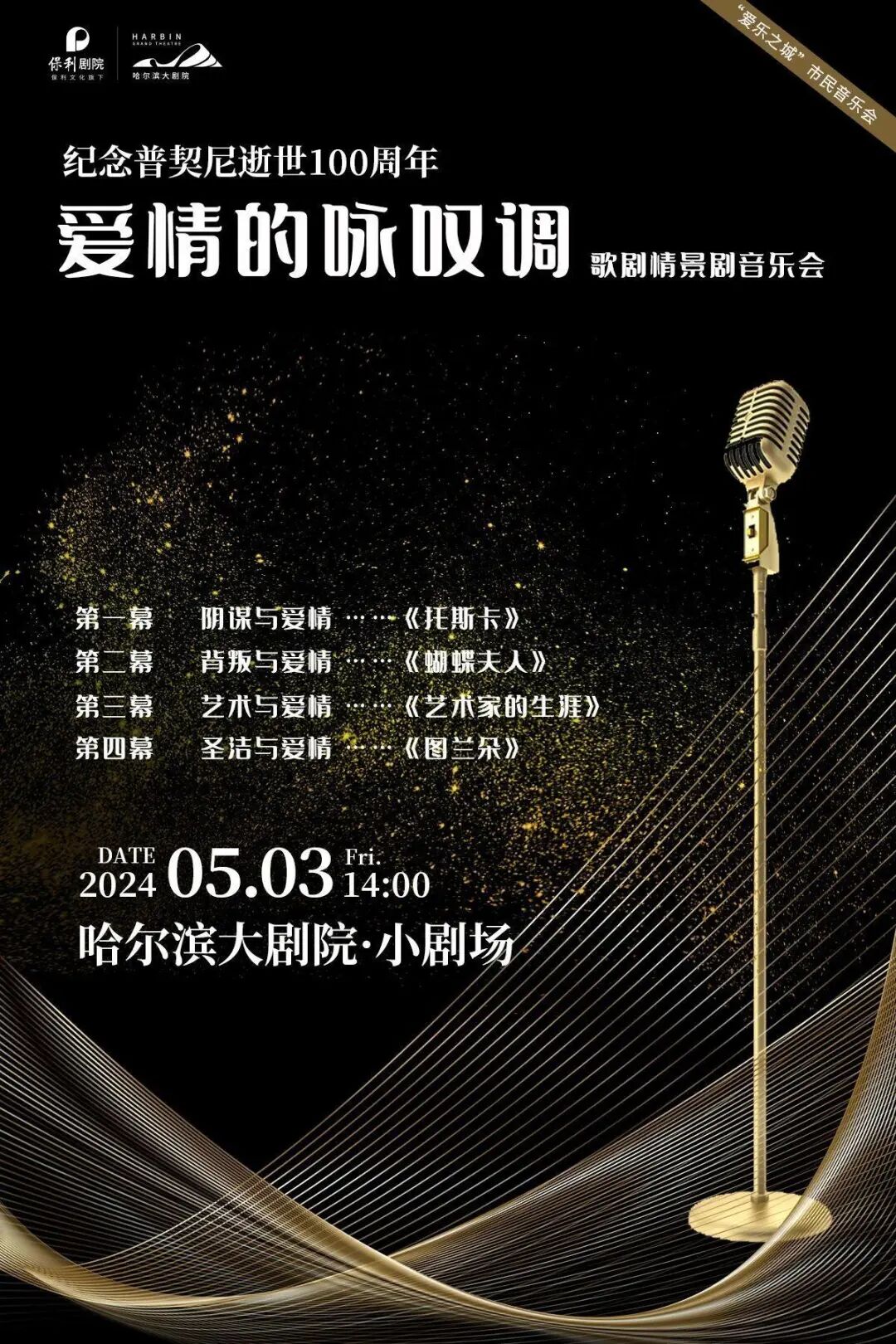2024年是意大利著名作曲家普契尼逝世一百周年,为纪念普契尼逝世一百周年,特把普契尼创作的最著名的四部有关爱情的歌剧《托斯卡》《蝴蝶夫人》《艺术家的生涯》《图兰朵》中的经典唱段抽出来,编成普契尼四幕歌剧情景剧——爱情的咏叹调。