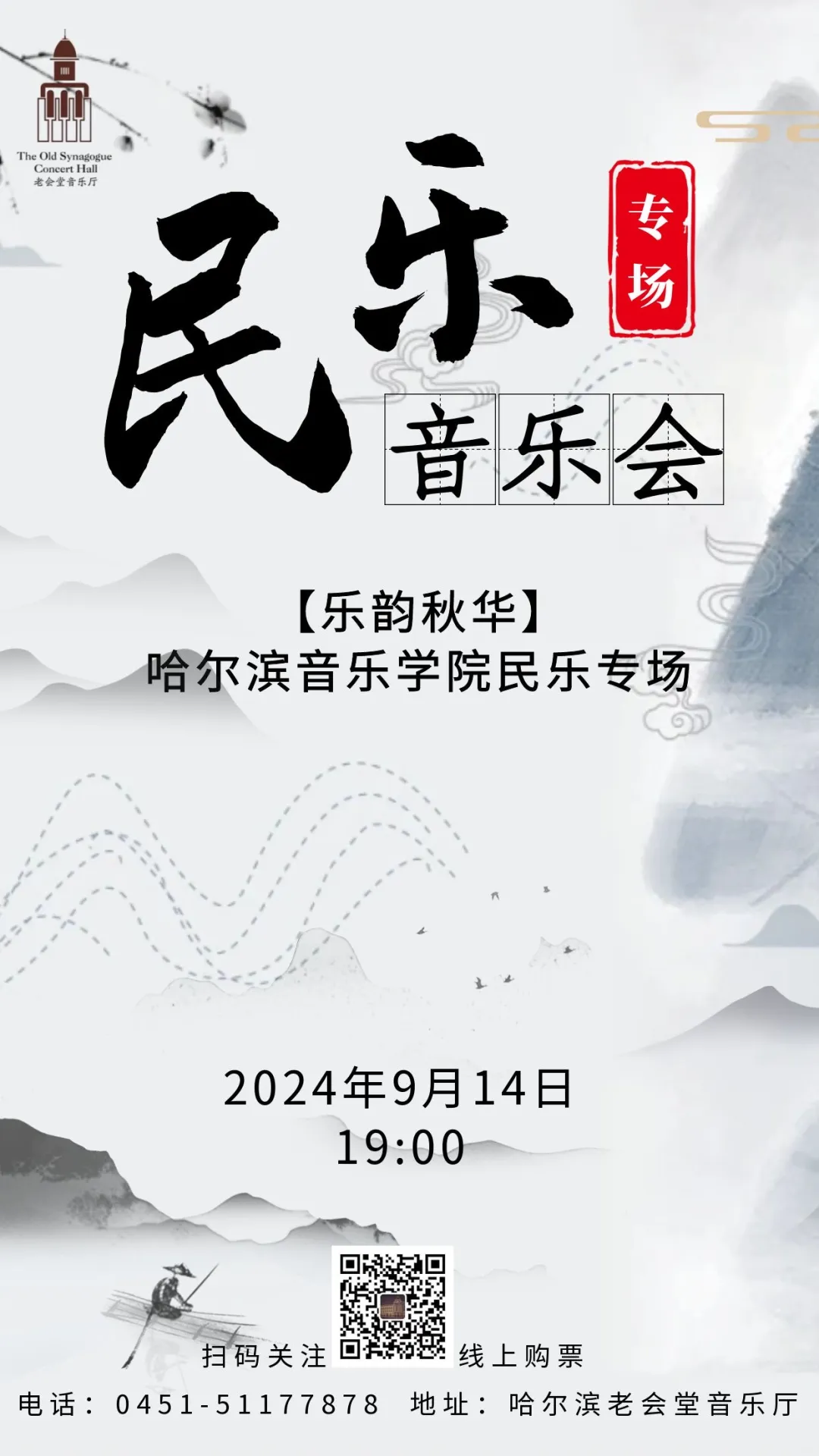 民乐之声,传承千年,以其独特的音色和表现力,引人入胜,触及心灵深处。将由来自哈尔滨音乐学院的几位青年演奏家带来《乐韵秋华》民乐专场音乐会,演奏扬琴独奏《恰空》、中胡独奏《草原上》、民乐合奏《花好月圆》等曲目。