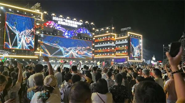 用力挥舞着荧光棒,跟着旋律尽情释放,享受着这场没有门票的音乐“派对”。实力唱将、宝藏乐队的到来,无疑给“市民音乐嘉年华”增添了更多的看点,掀起一波波音乐高潮。在防洪纪念塔广场,顺时针乐团以一首原创歌曲《顺时针的歌》点燃了全场,《光辉岁月》《只要你过得比我好》《红旗飘飘》等极富感染力的表演,让乐迷们随着乐队一起开启欢乐的夜晚。乐团带来的《新的天地》《执着》《后来》等耳熟能详的歌曲,真诚质朴的旋律和深情缱绻的歌词,台下观众情不自禁地挥舞手臂,跟着合唱。