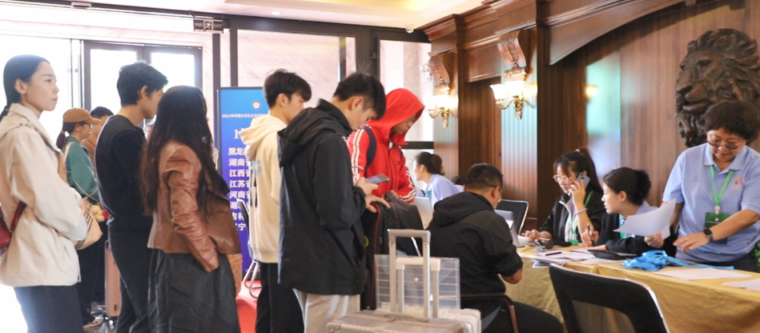 在报到处,接待工作正紧张有序的进行中。接待处被划分为三个区域,分别对应着不同的高校,保证登记队伍能够快速分流,减少拥堵和等待的时间。