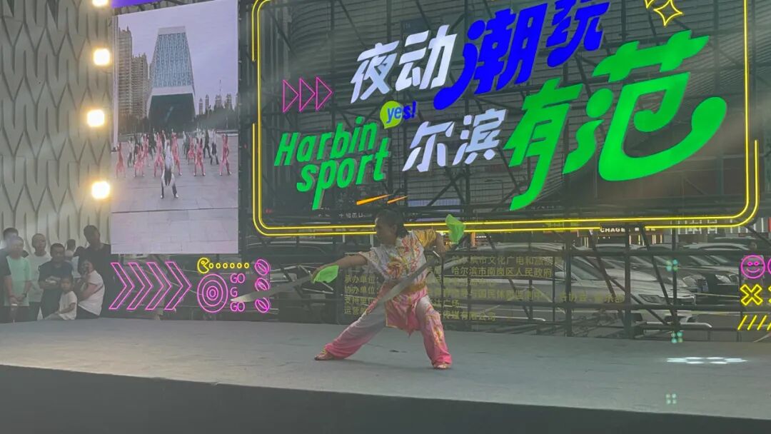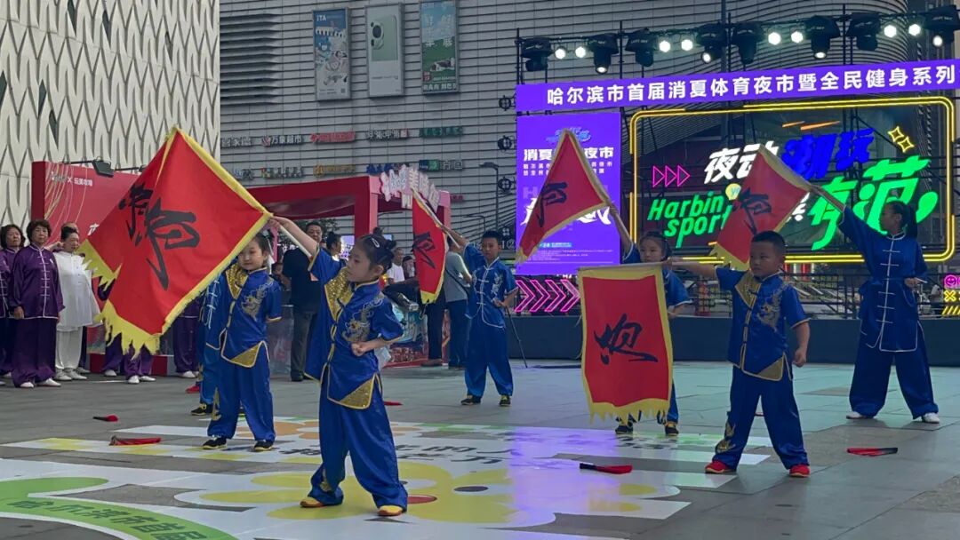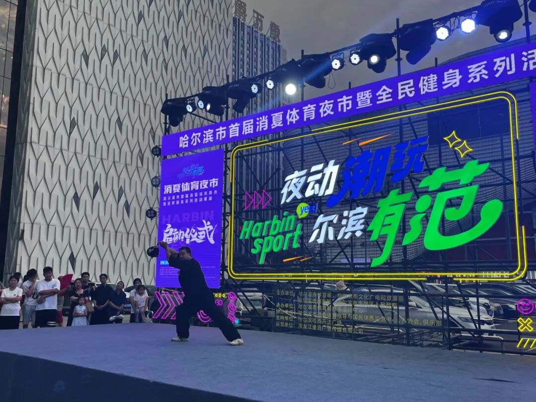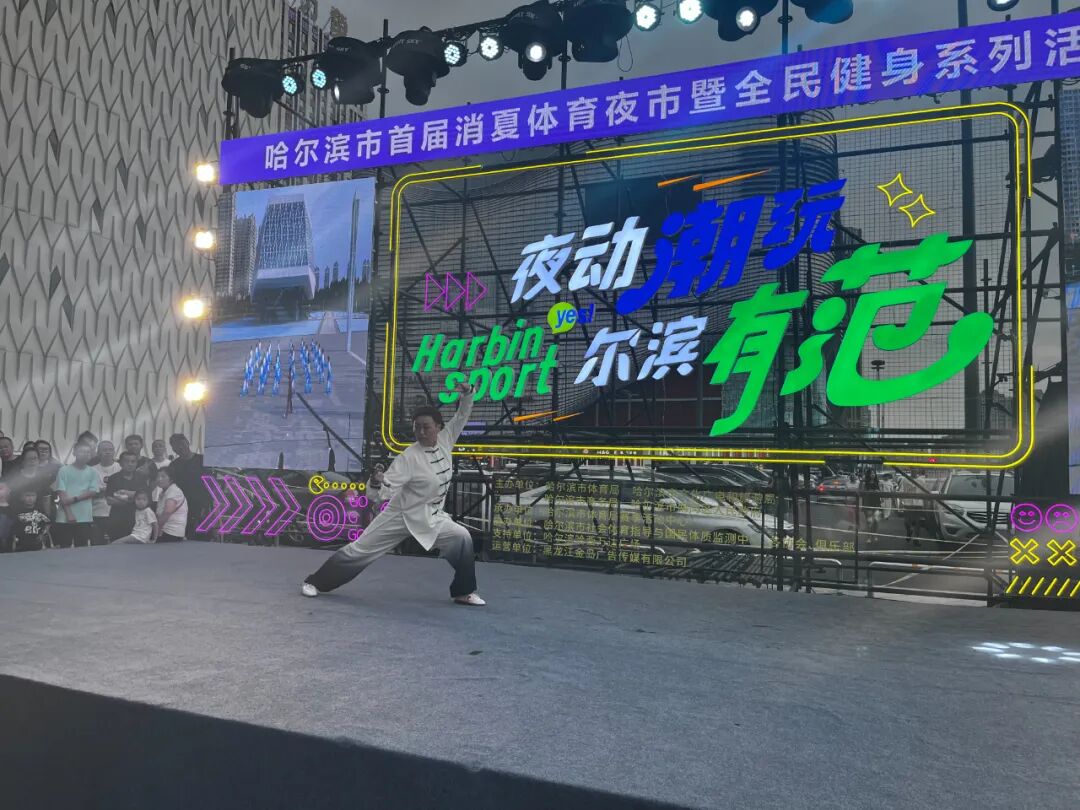 8月11日晚,哈尔滨市首届消夏体育夜市暨全民健身系列活动迎来了武术协会专场展演,来自香坊、南岗、道里、道外、松北、平房区17支代表队,230余名武林高手同场展示,参演选手从四岁儿童到七旬长者,展现了哈市武术运动深厚的底蕴和广泛的参与度。