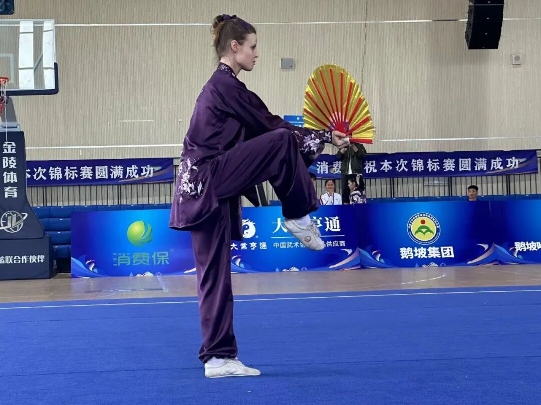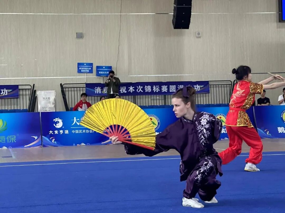 当日11时许,女子甲A组其它传统器械比赛正式开始,波琳娜和几名运动员一起上场,她参赛的武技是武当扇。从起势开始,波琳娜就表现得很沉稳,比赛过程中闪展腾挪,身法敏捷,动作一气呵成。