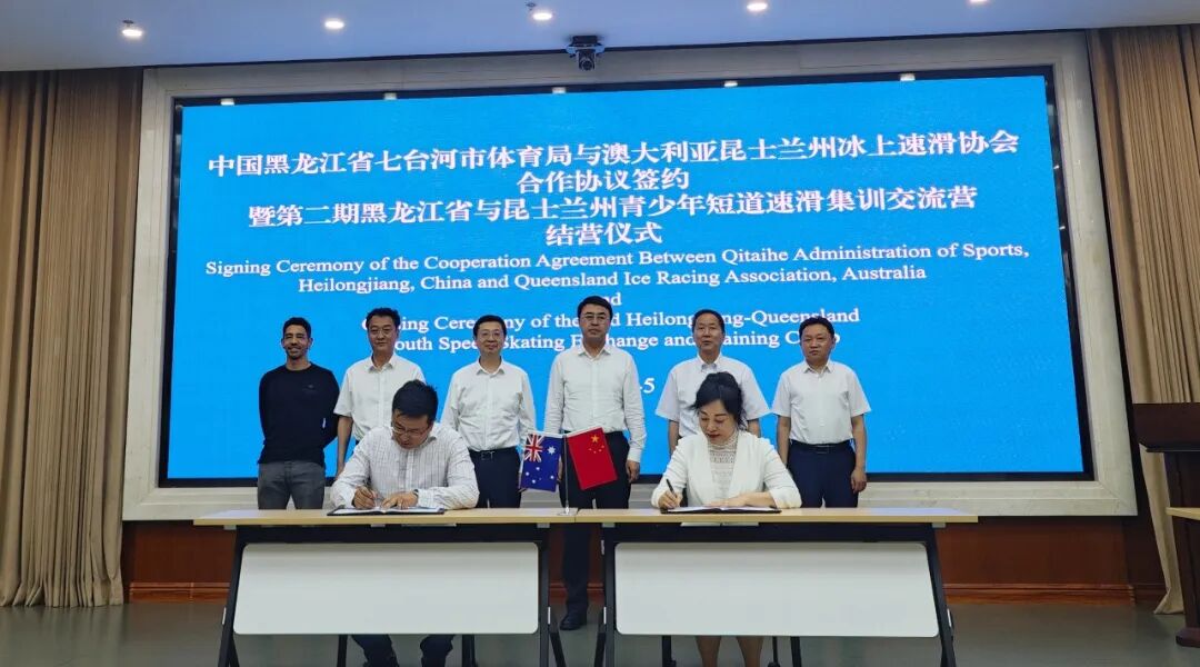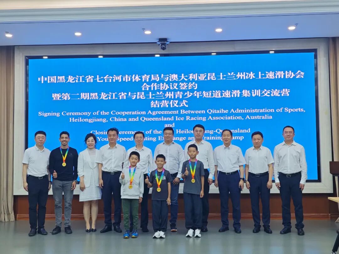 7月5日,第二期黑龙江省与澳大利亚昆士兰州青少年短道速滑集训交流营结营仪式在哈尔滨市举行,4名昆士兰州速滑协会队员结束了为期一个月短道速滑夏季集训。结营仪式上,七台河市体育局与澳大利亚昆士兰州冰上速滑协会签署了《短道速滑训练与能力发展训练营合作协议》。