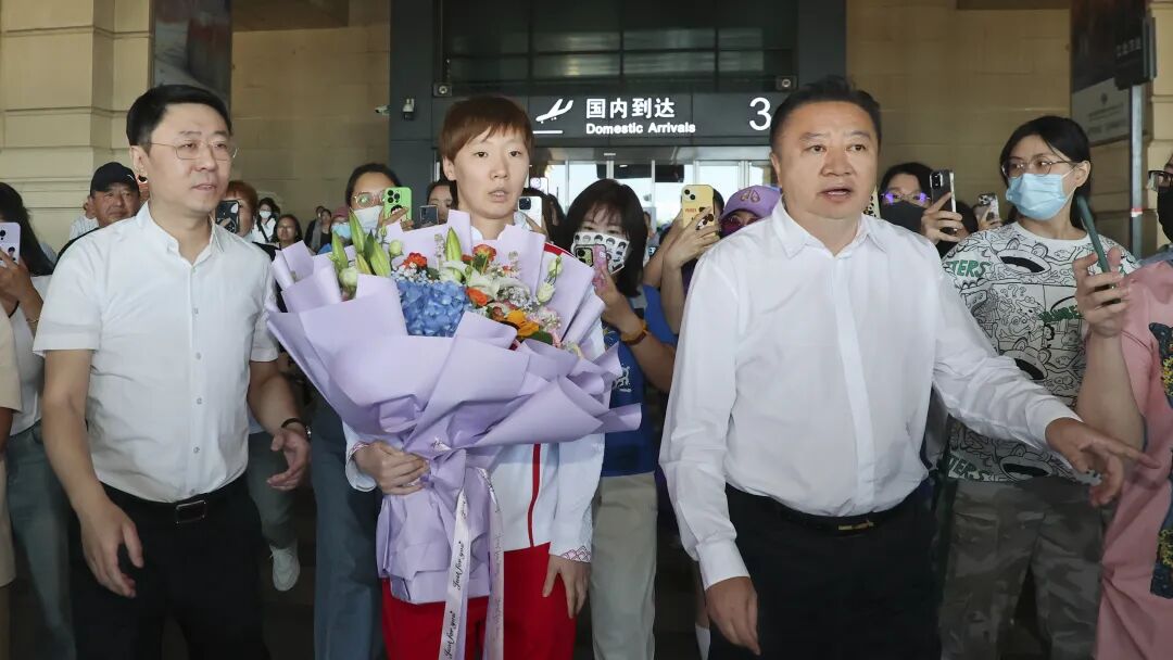 王曼昱面带微笑,向大家挥手致意。省体育局领导为王曼昱和教练员王飞送上鲜花,并对她在巴黎奥运会上的卓越表现表达了祝贺与敬意。王曼昱也表达了回家的喜悦心情和对家乡人民的感激。媒体记者们也用镜头记录下王曼昱荣耀归乡的珍贵瞬间。