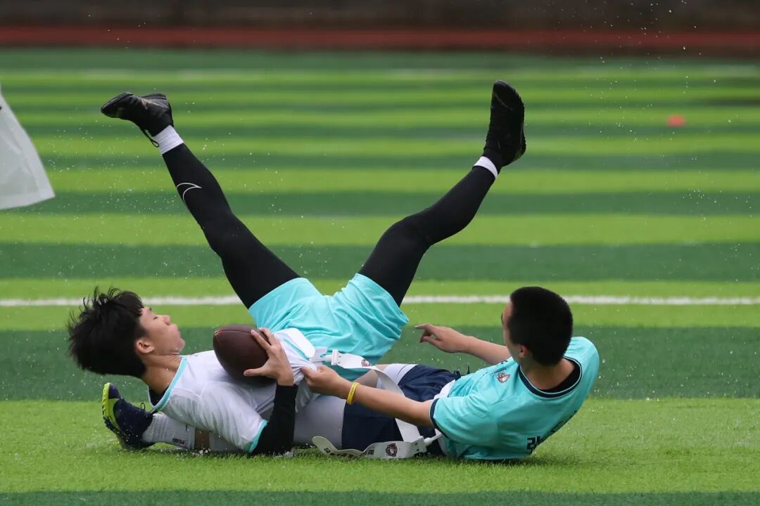 虽然天公不作美,但却并不影响橄榄球勇士们挑战自我的勇气和信心。在大雨中比赛,尽管面临着场地湿滑、接球困难等诸多困难,参赛选手们依旧表示,在这样的条件下打球,超爽!