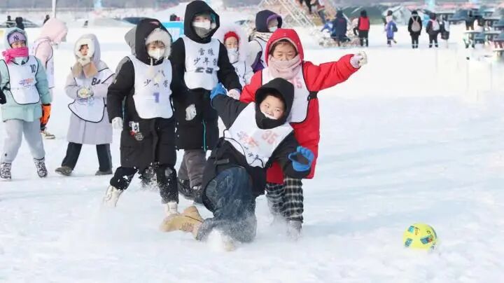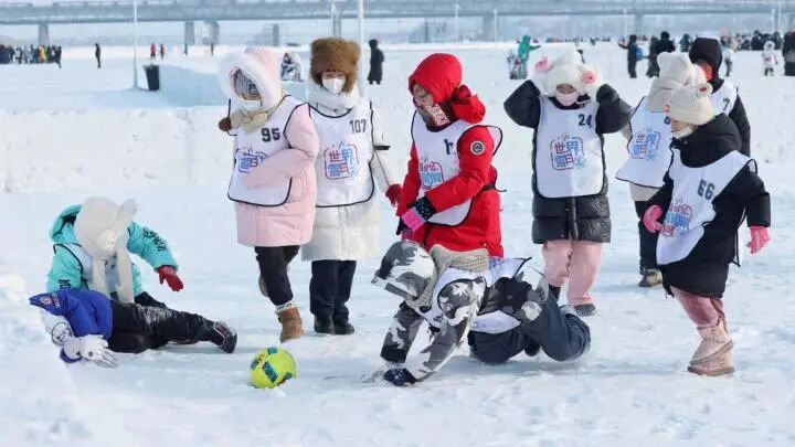 1月5日,奔跑吧·少年2023-2024年黑龙江省青少年冰雪运动会冰雪障碍比赛在哈尔滨冰雪嘉年华举行,来自省内的600名小学生和家长参加了当日活动。