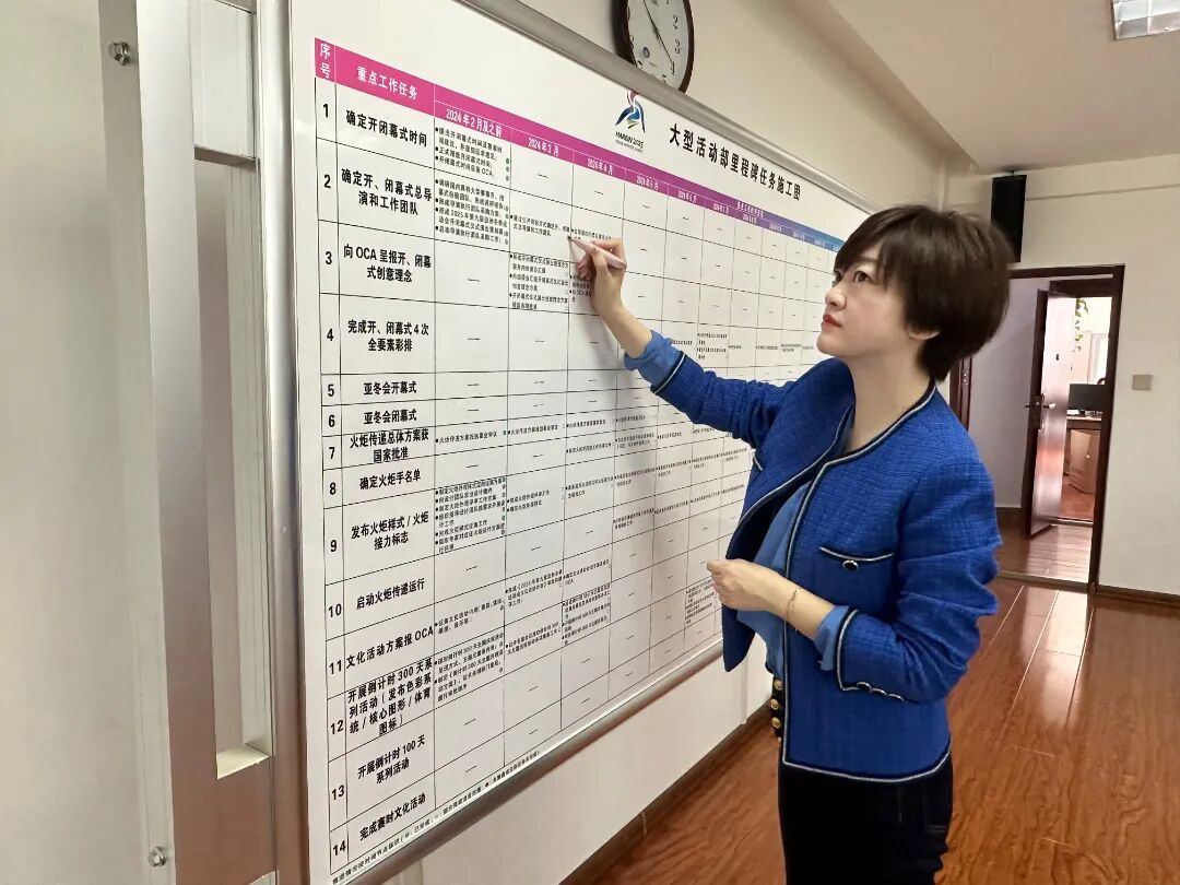 工作中,石雯慧展现出优异的创新意识和开拓精神。她勇于解放思想,关键时刻能够顶住压力,破解遇到的难题,牵头完成了亚冬会开闭幕式和赛事时间报批事宜。同时,她还结合亚冬会执委会要求,立足大型活动部工作需求和特点,按照《哈尔滨2025年第九届亚洲冬季运动会筹办工作总体方案》要求,制定了《大型活动部筹办工作总体方案》及亚冬会开闭幕式、文化活动、火种采集和火炬传递等工作方案。此外,她还牵头研究、提前谋划《大型活动指挥中心及运行团队组建方案》组织架构等10余项重点工作,为统筹推进大型活动奠定了坚实基础。