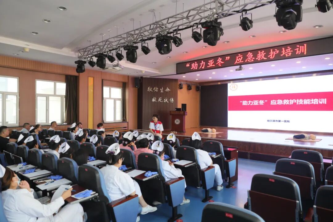 在2025年亚冬盛会即将来临之际,为进一步提升医护人员以及安保后勤人员应对突发事件的应急处置技能和急救意识,近日,哈尔滨市第一医院举行了“助力亚冬”全员应急救护技能培训。哈尔滨市第一医院护理部精心组织省市红十字会及生命支援术培训中心的骨干师资为全院医护人员,包括导诊、后勤、保安、保洁人员共同进行了应急救护技能培训,有效提高了突发事件中自救、互救能力和紧急处置水平,全力保障广大群众的生命安全。