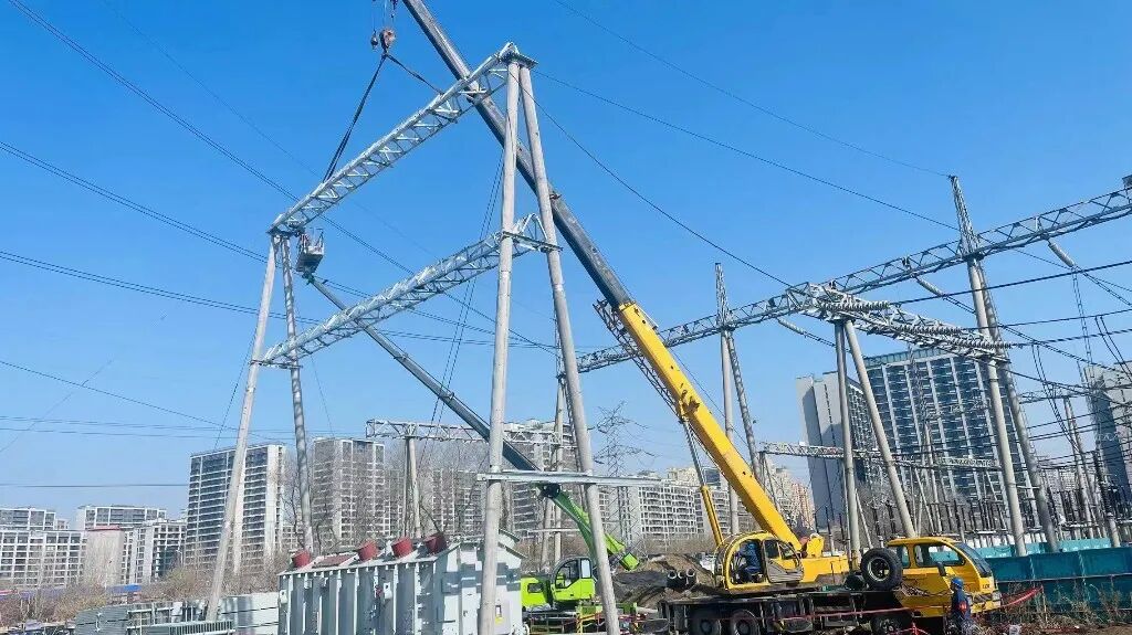 3月21日,国网哈尔滨供电公司哈西220千伏变电站3号主变扩建工程作业现场,工作人员操作变压器门型构架横梁,开展门型构架安装作业。(富群 摄)哈供电公司着力推进临空220千伏输变电等10项重点工程复工复产,其中包括亚布力220千伏变电站2号主变扩建等亚冬会3项重点工程,目前已完成亚雪66千伏线路33基基础施工,全力保障亚冬会保供工程任务按期完成。