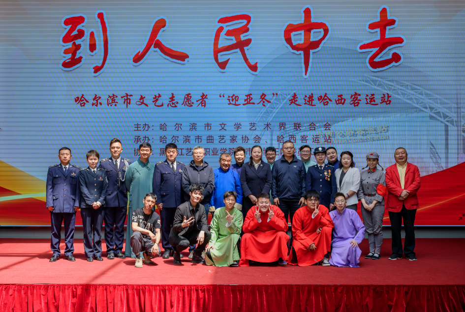 本次活动由哈尔滨市文联主办,哈尔滨市曲协、哈西客运站承办。以“到人民中去”“与人民同行”为宗旨,用文艺志愿服务的形式为喜迎亚冬会营造浓厚文化氛围,表达文艺工作者和广大人民群众热盼亚冬的喜悦心情,展示文艺工作者“迎亚冬”的实际行动和主动担当。