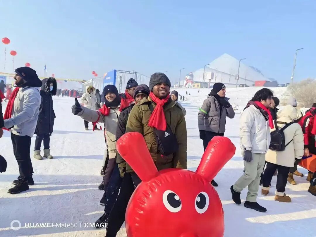 活动现场,来自哈尔滨工业大学、哈尔滨工程大学等高校,不同国家和地区的高校留学生们参加了雪地拔河、拉雪圈追逐、雪地毛毛虫、雪地足球等趣味项目,欢声笑语响彻哈尔滨的冰雪天地之间。活动的举办不仅推动了冰雪运动的普及和开展,更促进了留学生之间的友谊和凝聚力,让来自各个国家和地区的留学生像一个国际大家庭一样,一起欢聚在冰雪的世界中,尽情享受冰雪的乐趣。