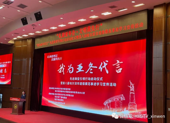 2023年12月5日,由市委宣传部、市精神文明办主办的“我为亚冬代言”先进典型引领行动启动仪式暨第八届哈尔滨市道德模范事迹学习宣传活动在哈尔滨师范大学举行。从5日起,哈尔滨广播电视台与市委宣传部、市文明办联合推出《我为亚冬代言》专栏,广泛宣传时代楷模、道德模范、劳动模范、哈尔滨大工匠、身边好人等先进典型,积极宣传各地各部门在抓好阵地建设、开展实践活动、培育文明新风等方面的好做法好经验,持续擦亮城市名片,为亚冬会的成功举办营造文明有礼浓厚氛围。