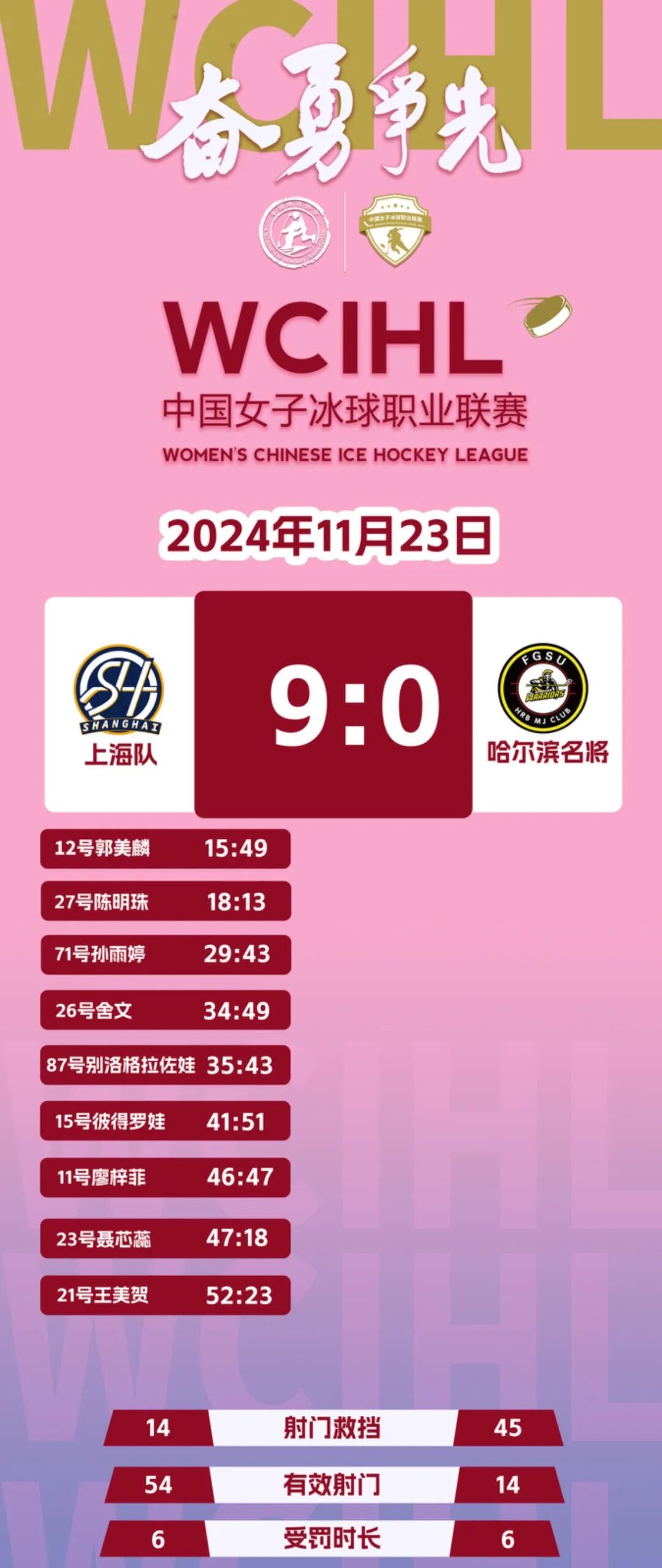 末节,上海队乘胜追击,连进四球,锁定胜局。41分51秒,上海队15号彼得罗娃挥杆射门成功。46分47秒,上海队26号舍文助攻11号廖梓菲再进一球。47分18秒,上海队31号吴顶文传球给23号聂芯蕊,聂芯蕊接球后射门命中。52分23秒,21号王美贺射门命中。最终比分为9:0。