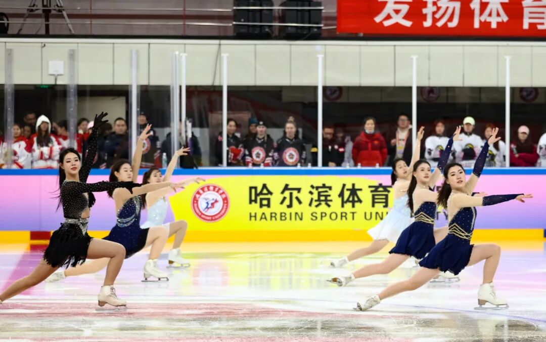 开幕式上,哈尔滨体育学院冬季奥林匹克学院学生带来花样滑冰队列滑表演《哈尔滨等你来》。