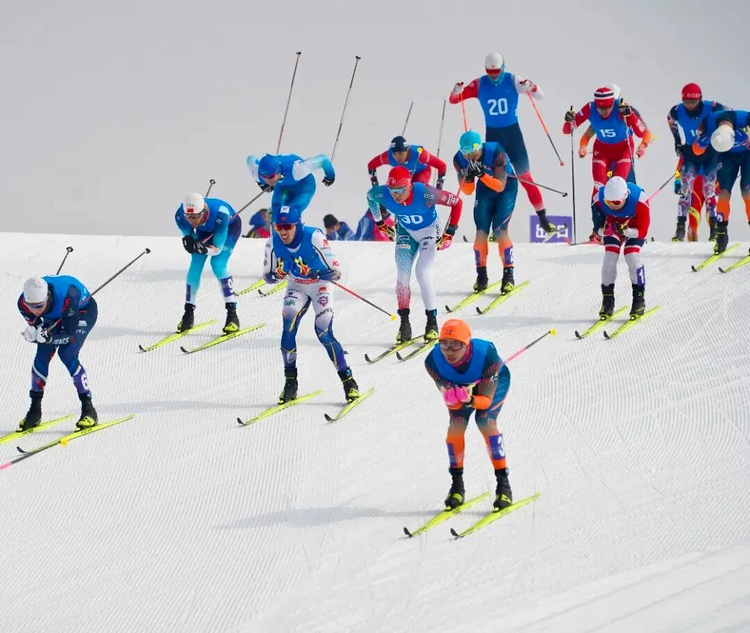 越野滑雪女子30公里集体出发(传统技术)比赛中,李馨(黑龙江/广东)夺得金牌,孟红莲(黑龙江/广东)获银牌,李磊(吉林/湖北)获铜牌。